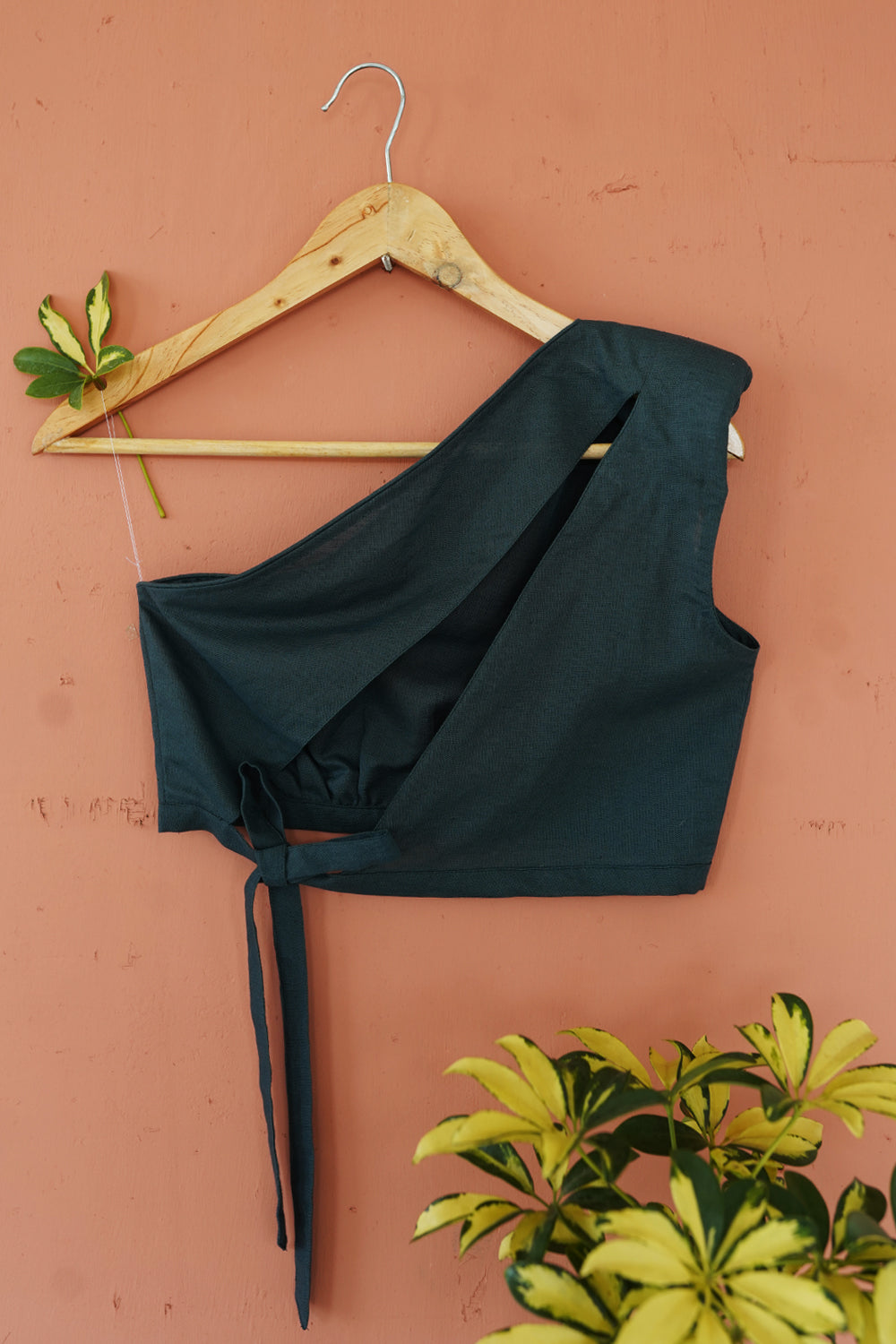 Naturally dyed pure Linen Wild pine Regular crop Padded one shoulder Asymmetrical back cut open Tie-up at back No darts Cold hand wash Length 13 inches Important Note : All our products are purely handcrafted with love and care, the colors and prints might vary. Subject to the availability of the colous, prints and fabrics. Image only for reference. No returns or exchange, as all our products are make-to-order or tailor-made to suit your custom body type, size and fit. Shipped in 7-8 working/business days.