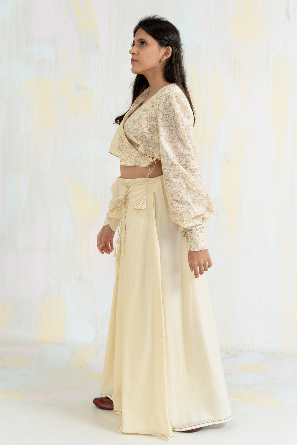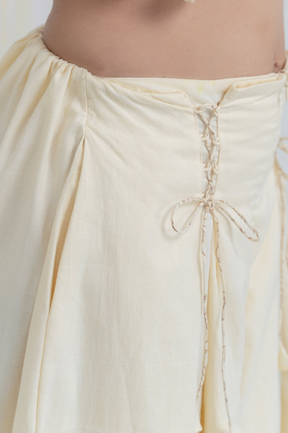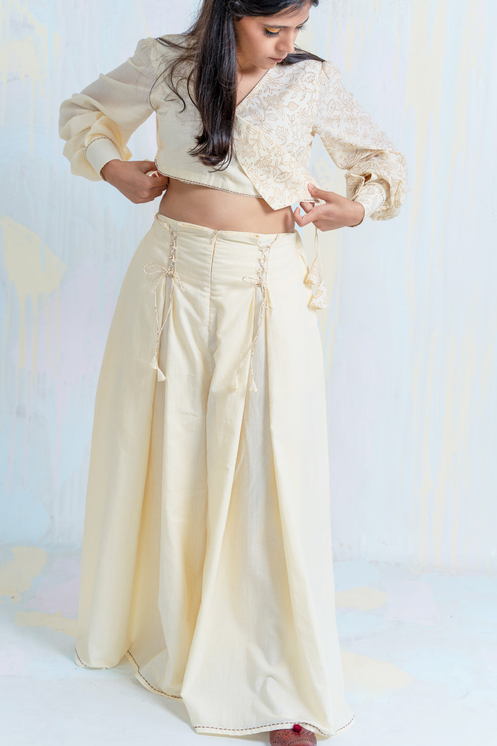 100% mul mul with lining Coral peach Custom made Bagru hand blocked print Free size Mid rise Front opening Inverted pleat on waist with a tie-up and tassels Elastic at back waist Side pockets Threadwork Cold hand wash Length 12 inches Model is 5’1” and wearing size S Important Note : All our products are purely handcrafted with love and care, the colors and prints might vary. Subject to the availability of the colous, prints and fabrics. Image only for reference. No returns or exchange, as all our products are make-to-order or tailor-made to suit your custom body type, size and fit. Shipped in 7-8 working/business days.