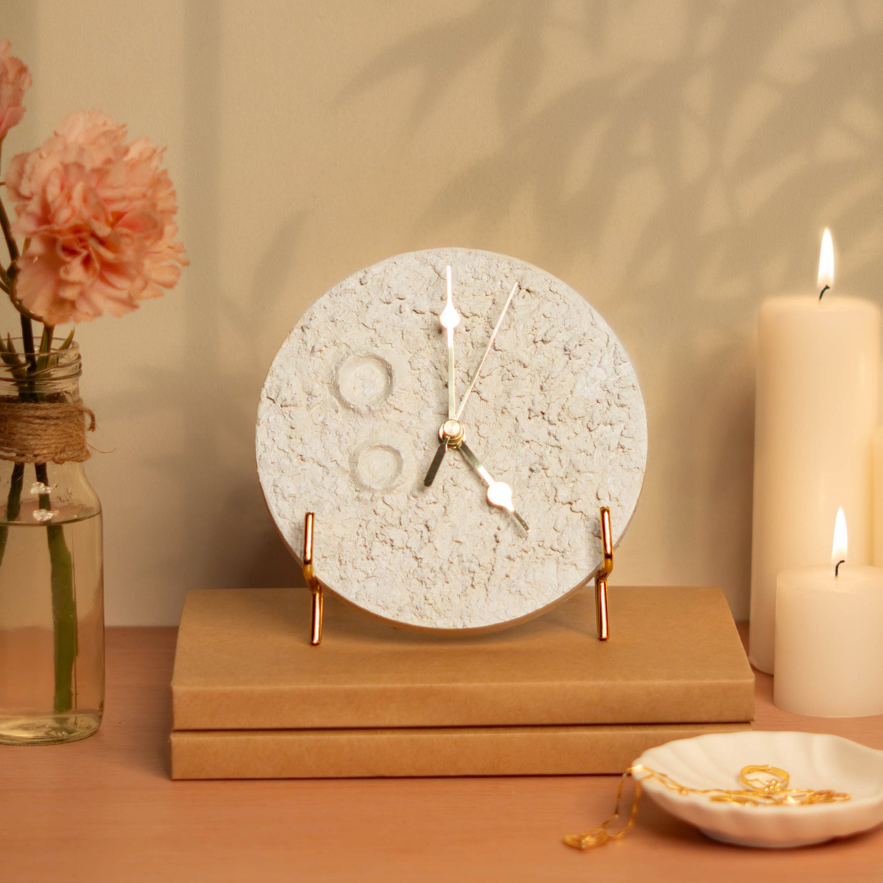 Meet your new favourite table clock — shaped like the moon and made for moments that matter. It’s the perfect mix of function and fantasy, quietly ticking away while adding a soft glow of charm to your space.