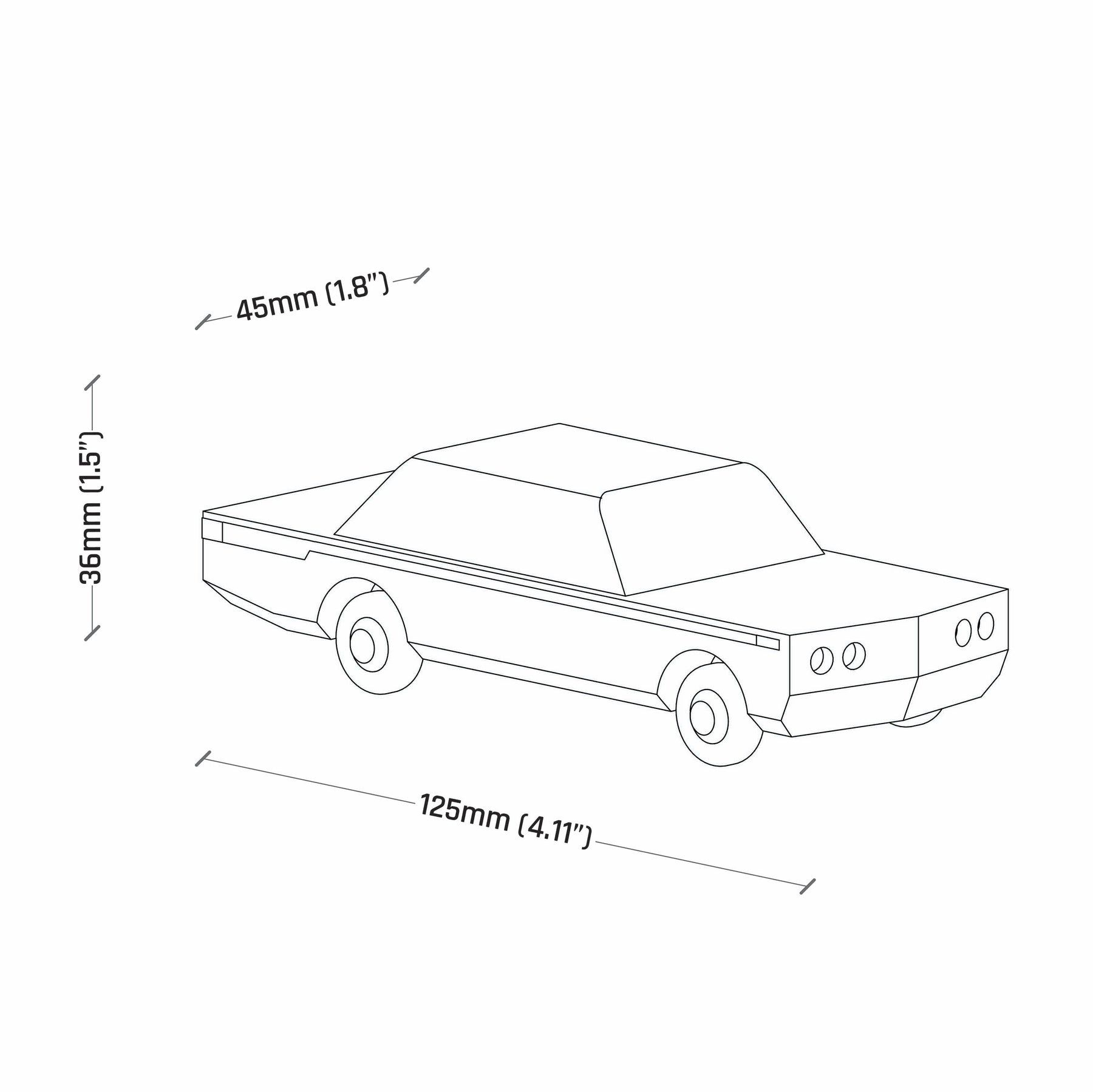 L: 12.5 cm × W: 4.5 cm × H: 3.6 cm ≈ 125 g