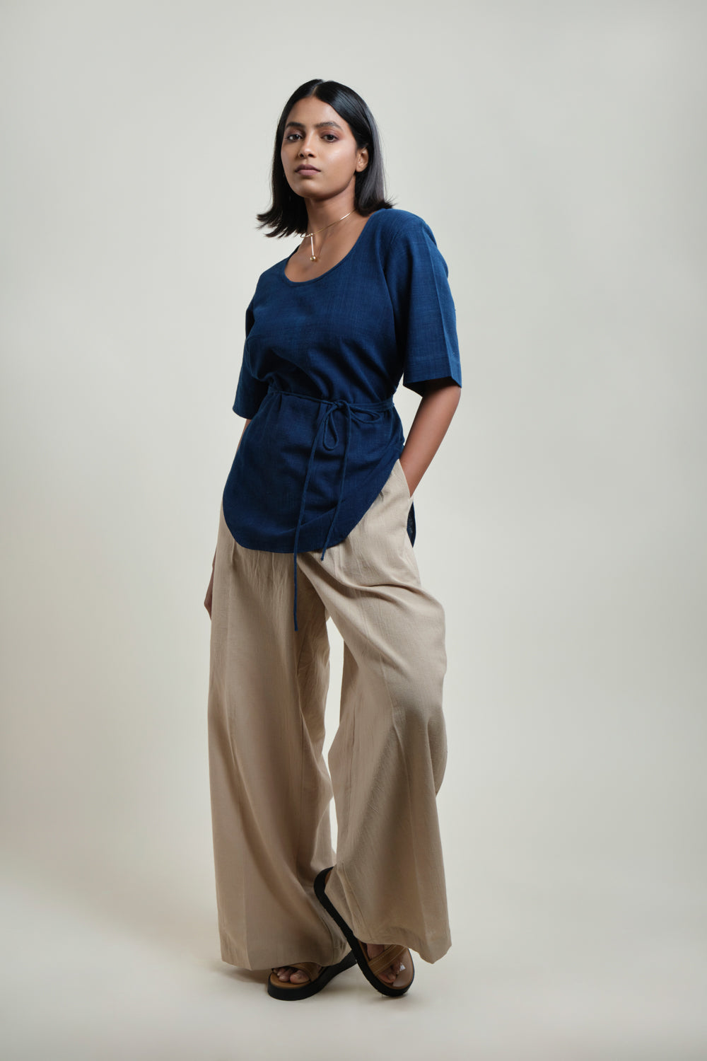 U shaped top with broad neck top with half sleeves with tie up at waist. Our Jia top is versatile and charming to have for the days when you want to keep it stylist yet simple.