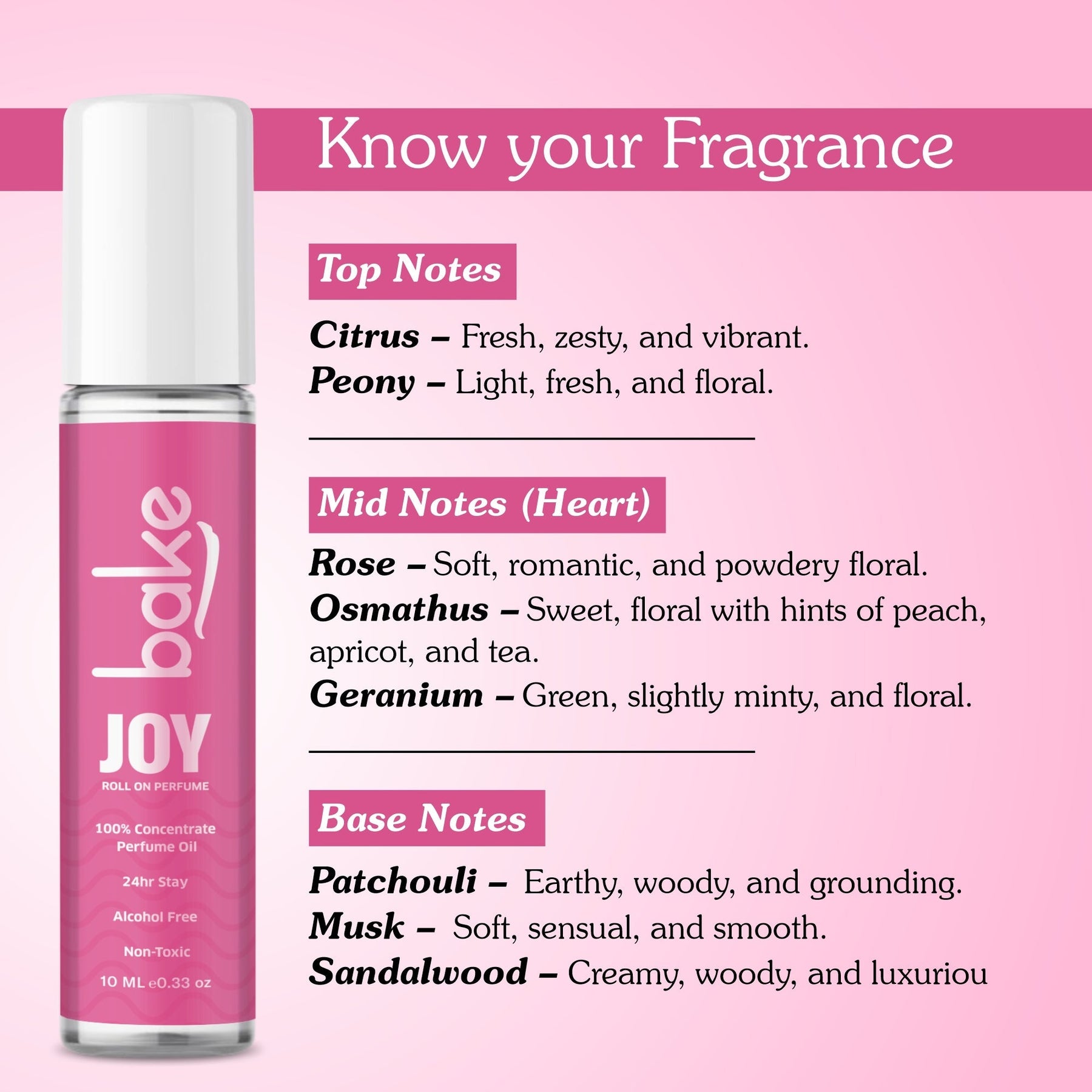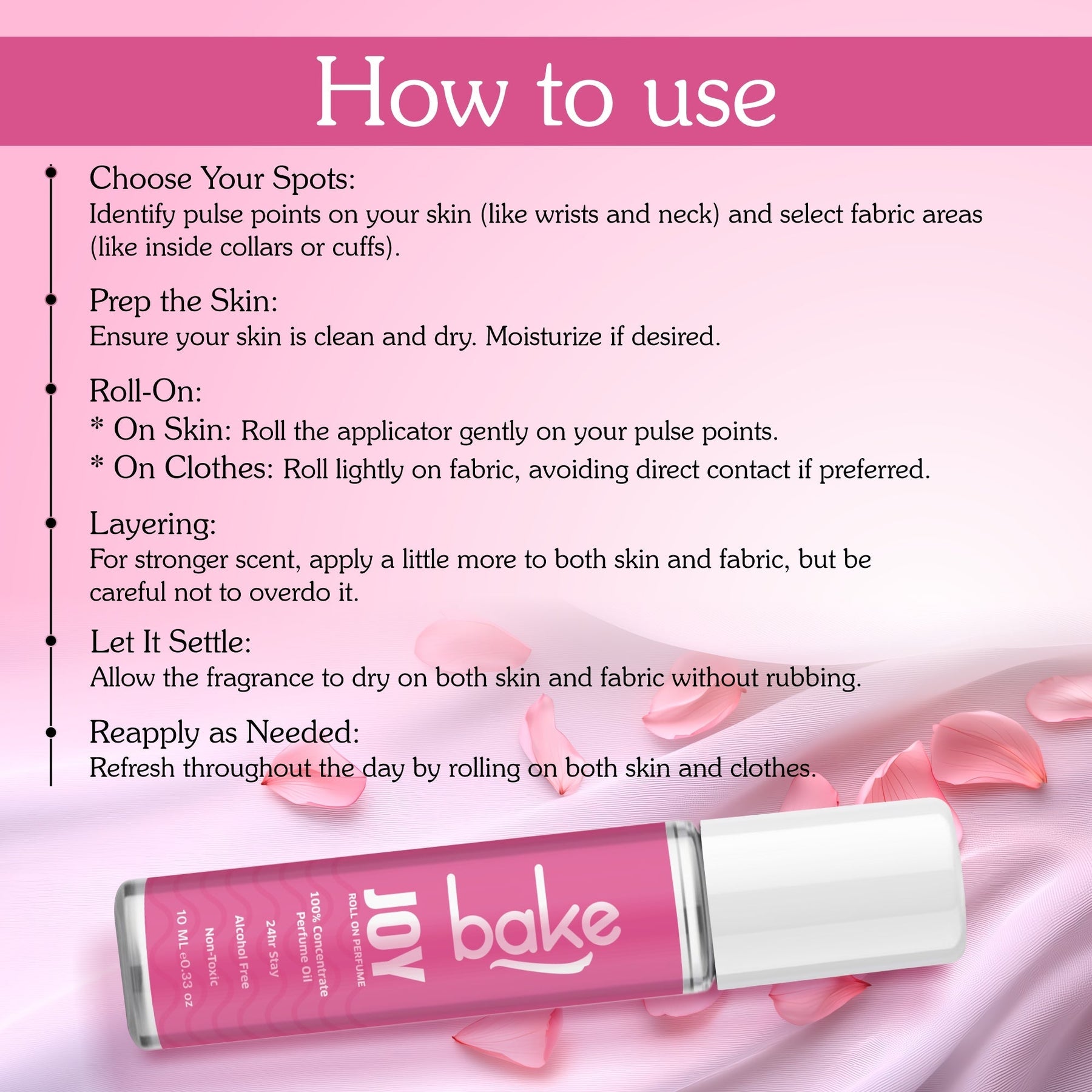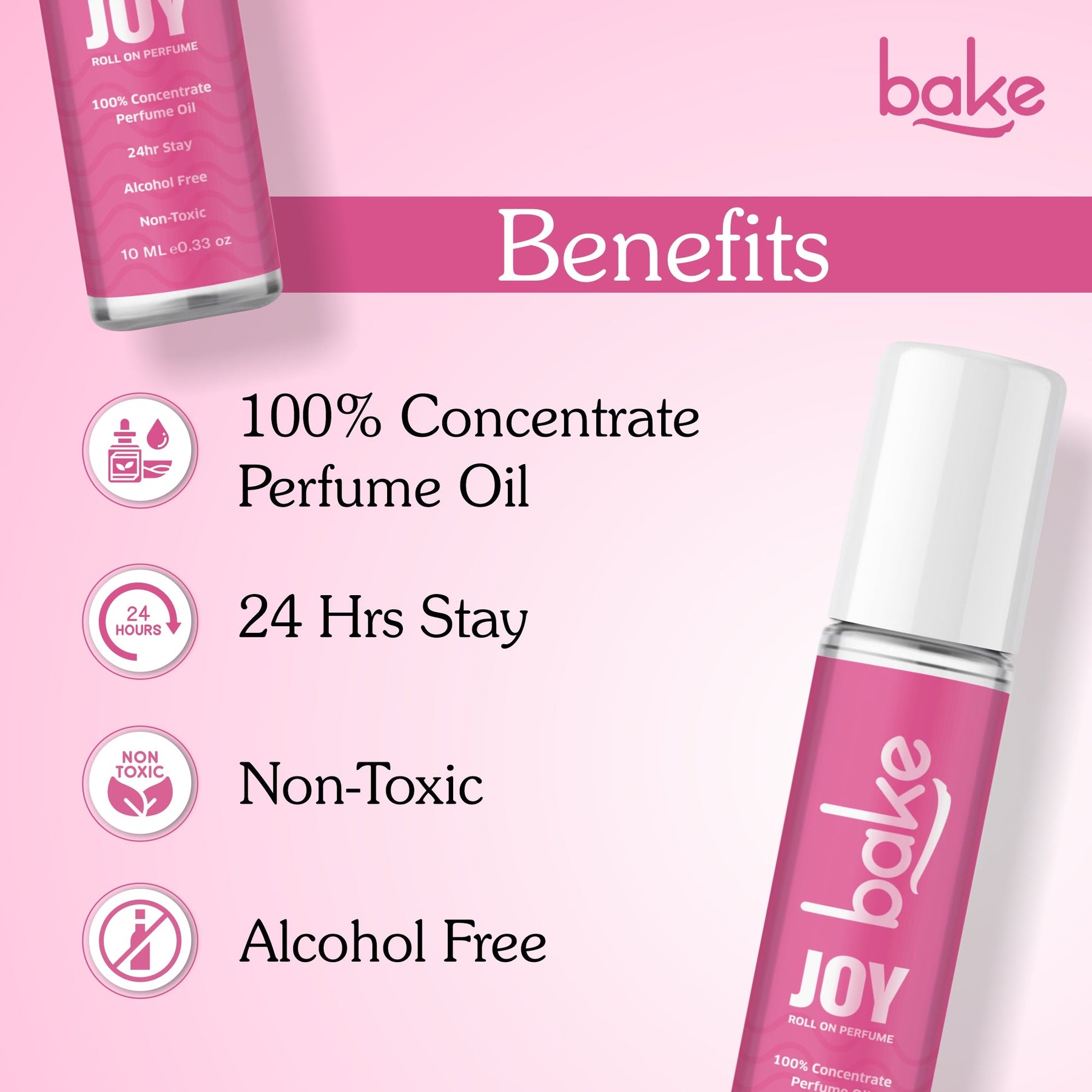 Experience the luxury of long-lasting fragrance with BAKE Joy 100% Concentrated Perfume Oil Roll-On, formulated with an intense and pure scent. Free from alcohol, this roll-on is gentle on the skin, ensuring a non-drying, irritation-free experience. The warm and sensual blend of peony, rose, and delicate jasmine creates a captivating aroma that soothes the senses and lingers for 24 hours. Designed for both men and women, this unisex perfume is perfect for daily wear, special occasions, or on-the-go freshness. The compact 10ml bottle makes it easy to carry, allowing you to reapply anytime, anywhere for a burst of fragrance. Whether you prefer a subtle everyday scent or a signature fragrance that lasts all day, BAKE Joy delivers a timeless, enchanting experience with every roll-on application.