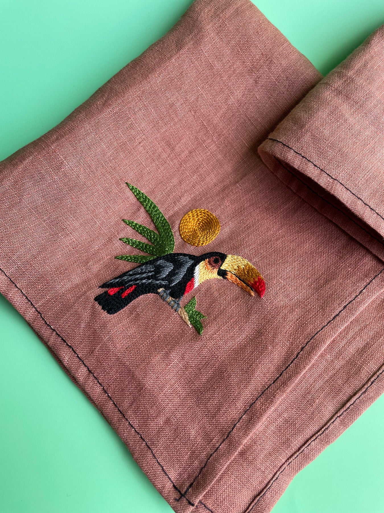 Bring a touch of the tropics to your table with Rasa Home’s latest table linen, thoughtfully crafted from sustainable hemp fabric. Naturally breathable and durable, hemp is one of the most eco-friendly materials available — it requires minimal water, grows without pesticides, and softens beautifully with every wash. Each piece is handmade in India by skilled artisans and finished with a delicate corner embroidery in bright, tropical colours. Light, airy, and full of character, this linen is designed to brighten your space while celebrating mindful living and conscious craftsmanship. Its timeless design and lasting quality make it a piece you’ll cherish for years — one that can be lovingly passed down through generations.