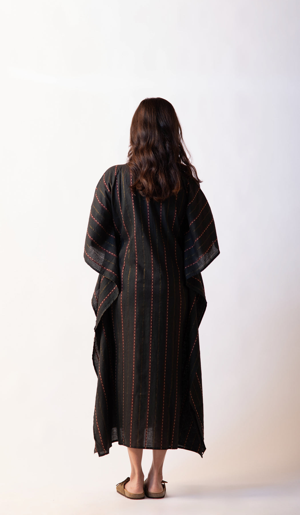 - With its classic neckline and wide sleeves, this kaftan is as ideal for a casual day out as it is for an intimate gathering.