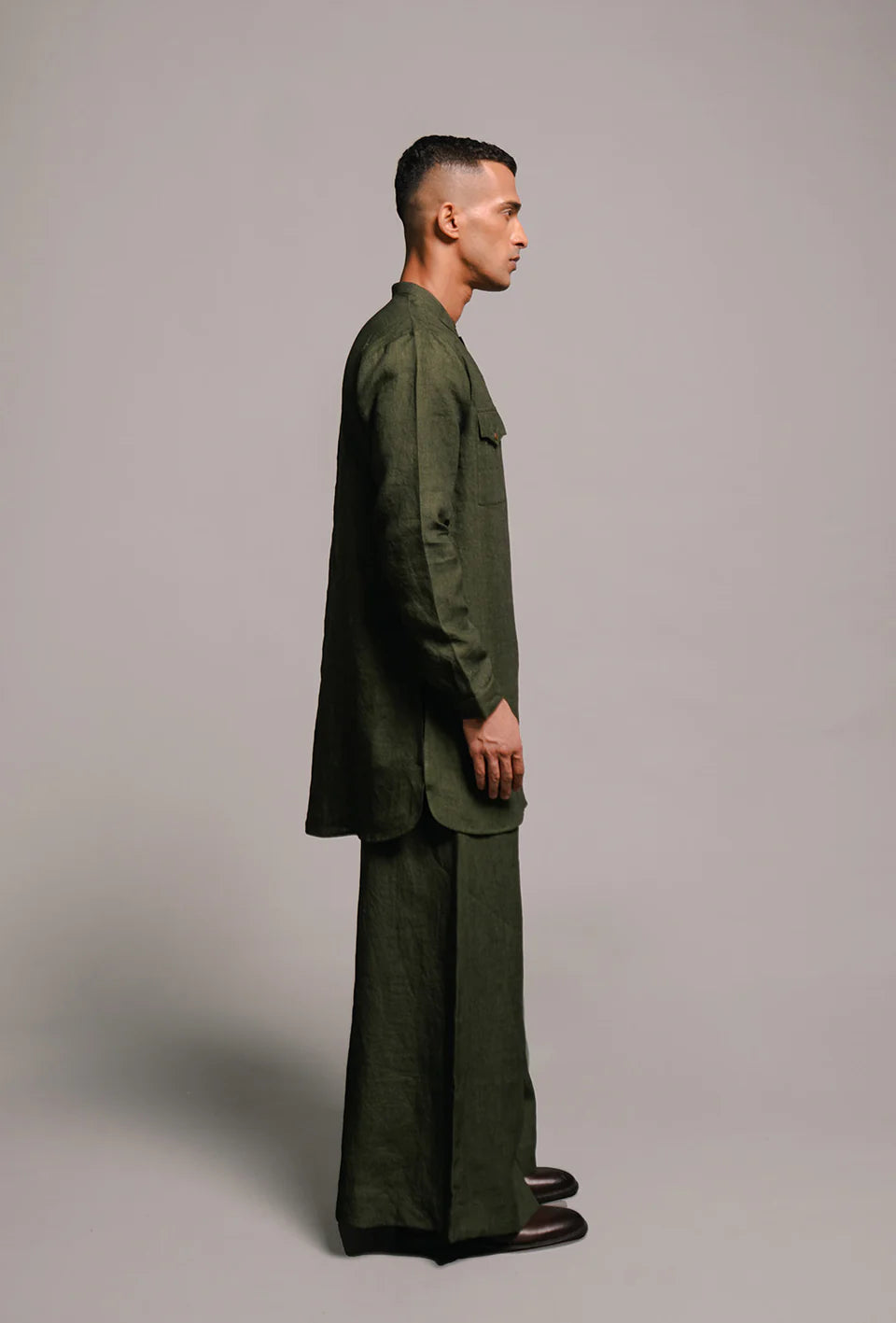 A flattering silhouette in minimal earthy hues, the linen kurta pyjama set is ideal for those who want to move away from conventional festive clothing. You'll enjoy wearing for family gatherings, wedding functions or casual evenings lounging at home.