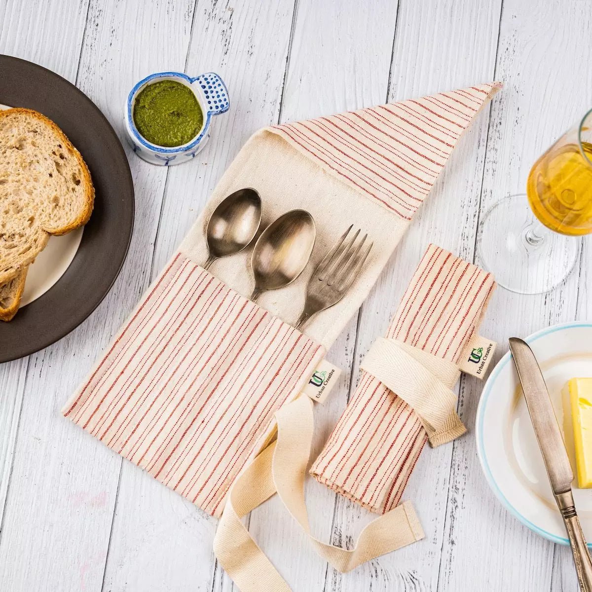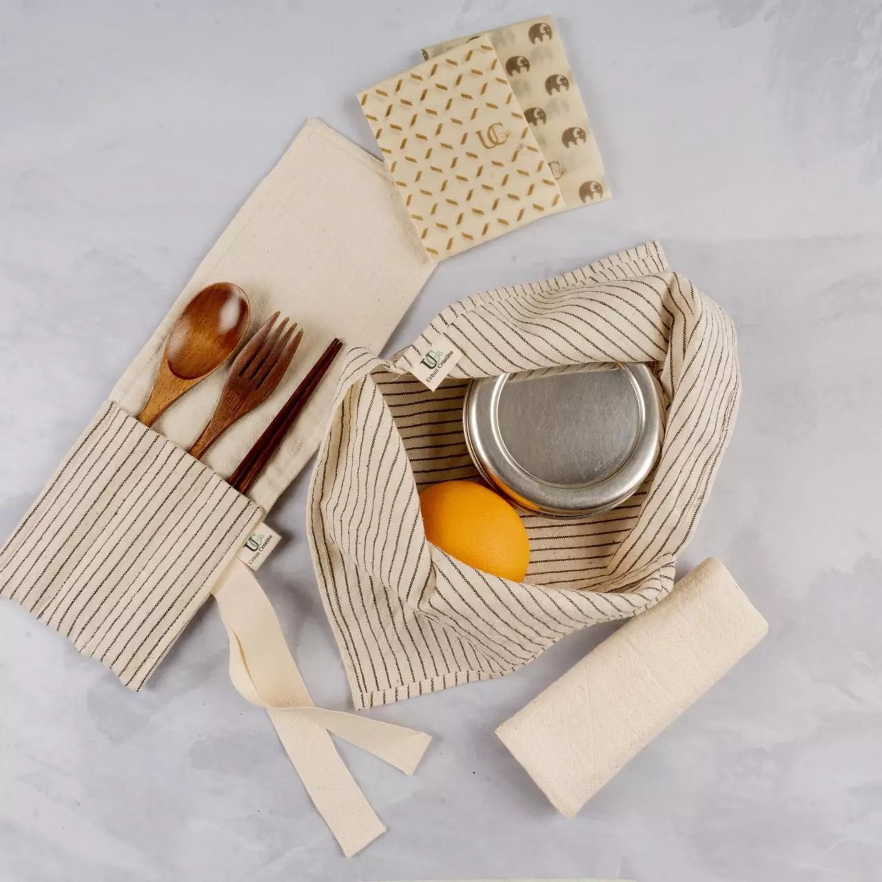 Choose a sustainable lifestyle by carrying your reusable cutlery in our Tanuka Travel Cutlery Wrap in organic Indian ‘Kala Cotton’ with your lunch or snack box. Pair it with our Tanuka Bento Bag for a plastic and waste free lunch!!