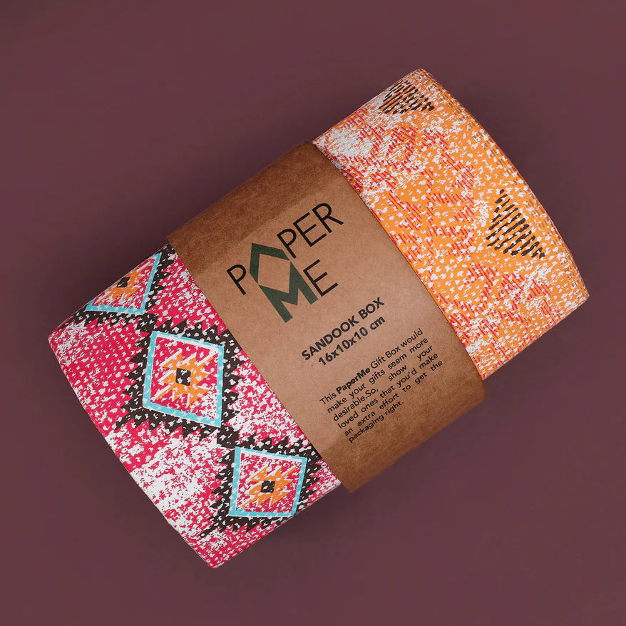 Elevate Your Gift-Giving with PaperMe Gift Boxes. Crafted from high-quality materials with vibrant designs, PaperMe Gift Boxes offer elegance and durability. Perfect for Sandook boxes, they bring charm and fun to every occasion! Material: Cardboard & 110 GSM Handmade Paper