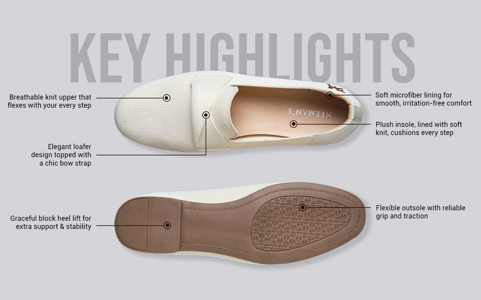 You asked. We designed. The first-ever women’s loafers from the house of Neeman’s is here - Meet the Knit Grace! Breathable knit that moves with you. Plush comfort that pampers. A silhouette that balances soft charm with serious intent. Finished with a bow strap and a block heel lift, this loafer isn’t just debuting - it’s delivering.