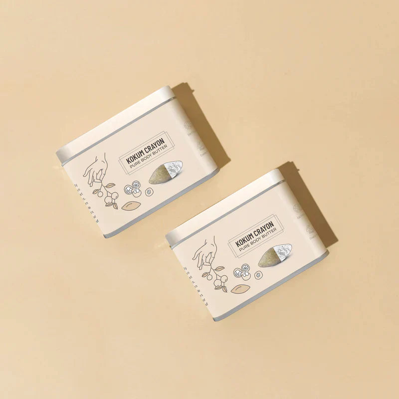 Kokum Crayon Pure Body Butter is made by extracting fresh kokum fruits from the forests, extracting butter from its seeds by breaking the kernel and boiling it. This unique carbon-negative body butter is packaged sustainably in a tin box, eliminating the need for plastic.