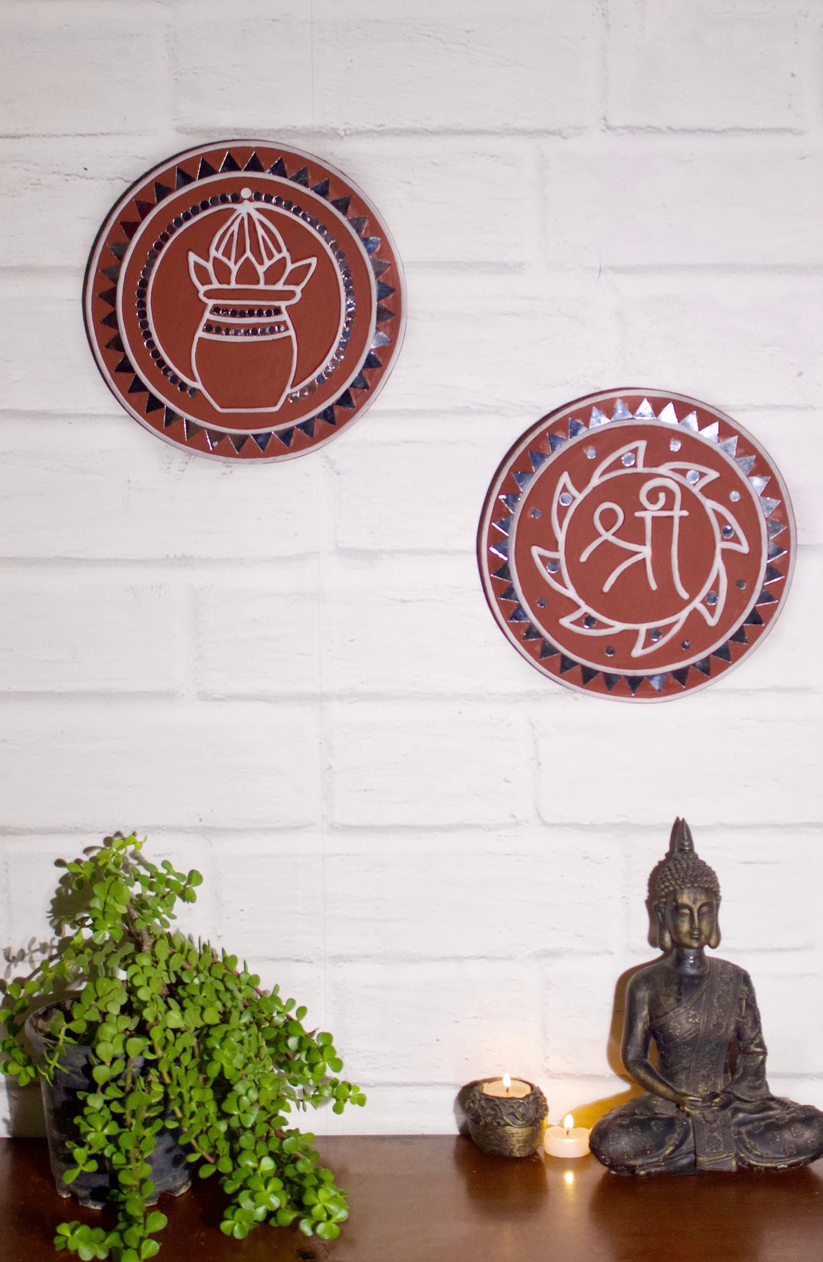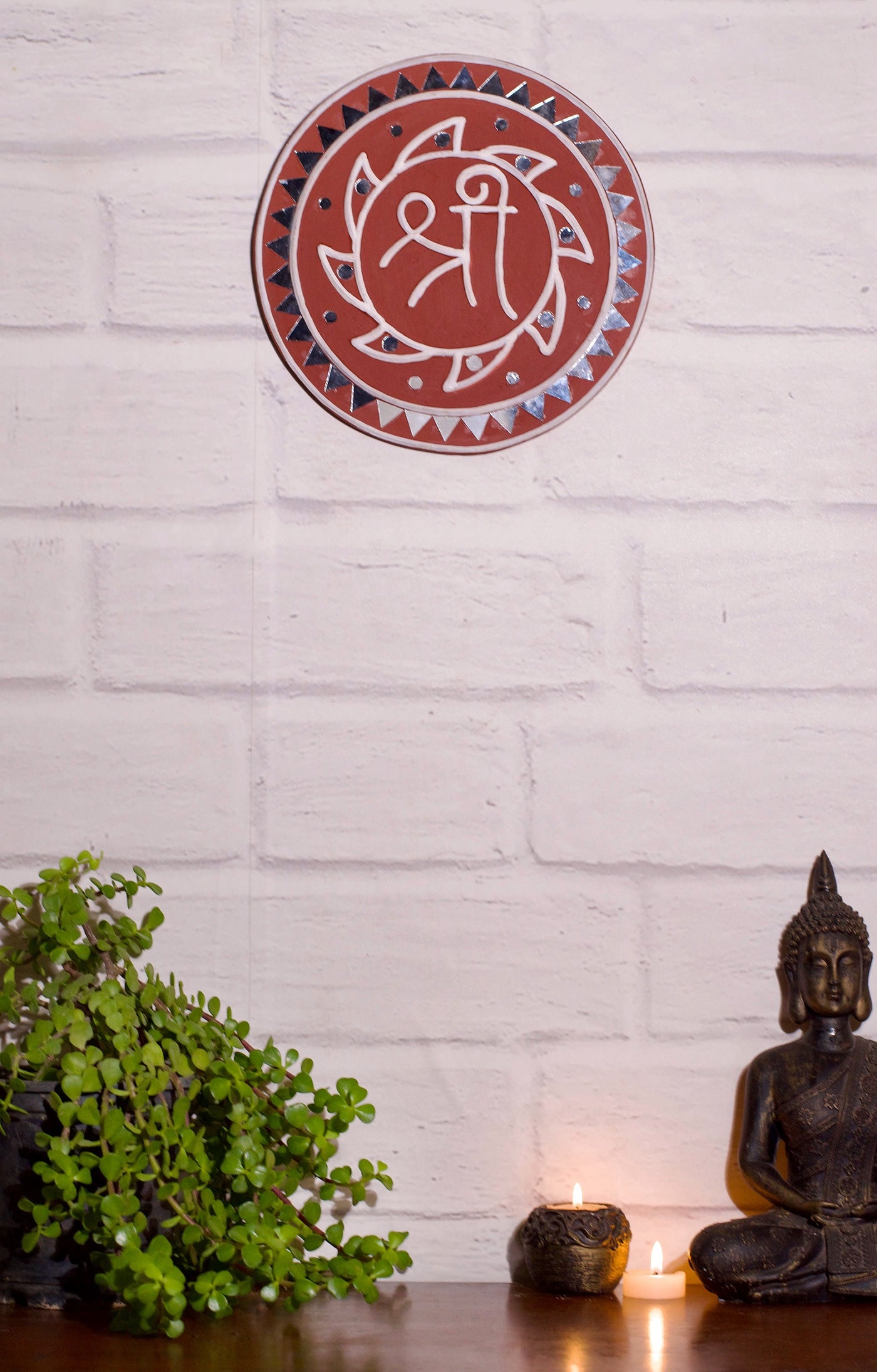 Kutch Lippan Mud Work Shree symbol 25 cm Round Wall Plate - Terracotta