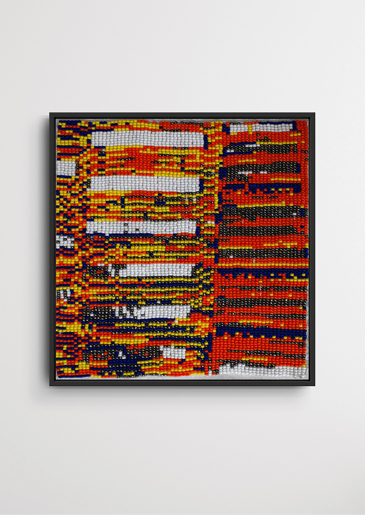Material: Glass beads, cotton threads stitched onto cotton fabric