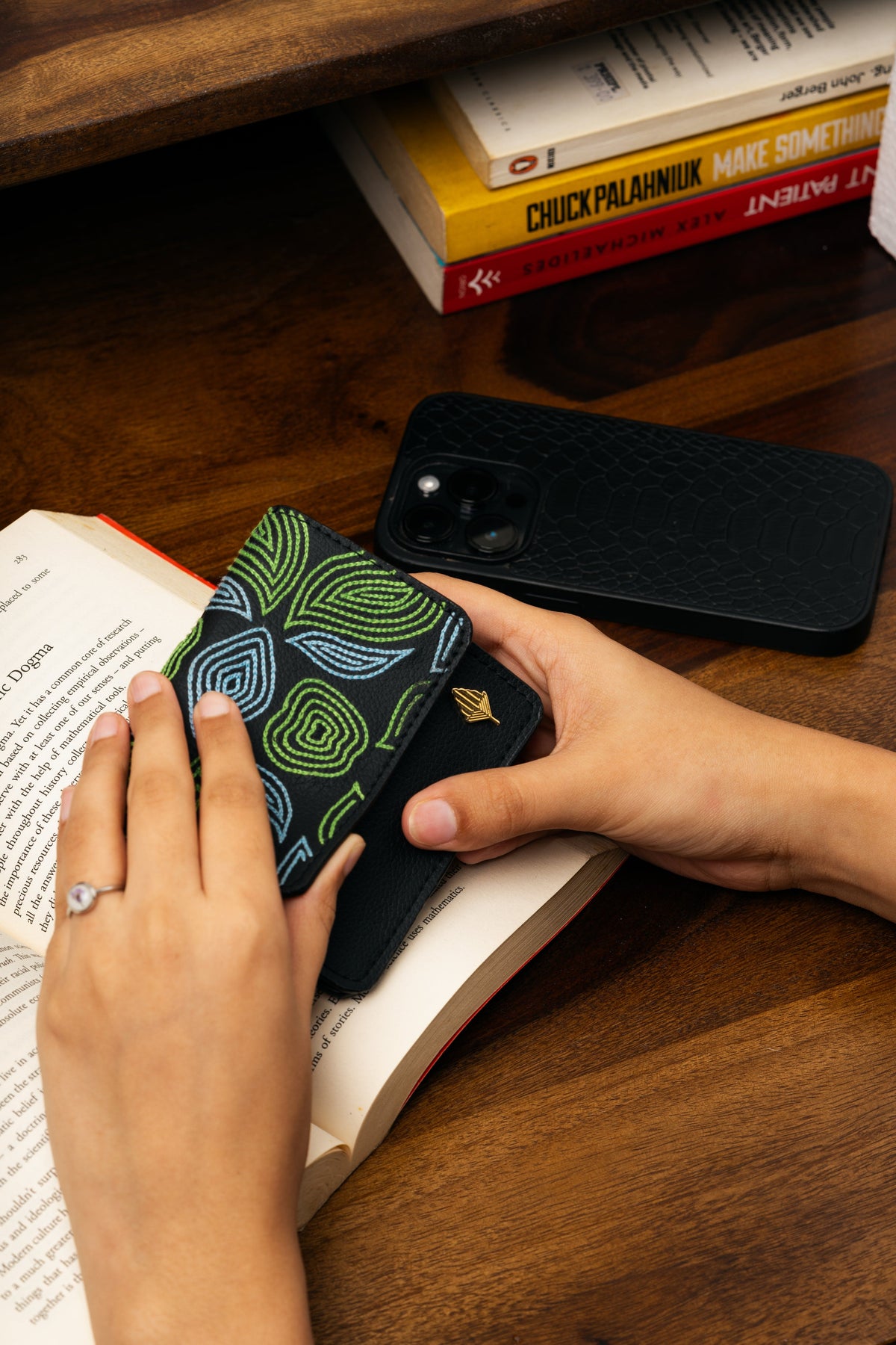 Combine simplistic hand embroidery, plant-based leather and a super spacious mini-wallet that keeps all your cards, cash, change and a little extra. It expands as you add more stuff. The Lana Cardholder can be customized to be a mini sling wallet. It is just truly special.