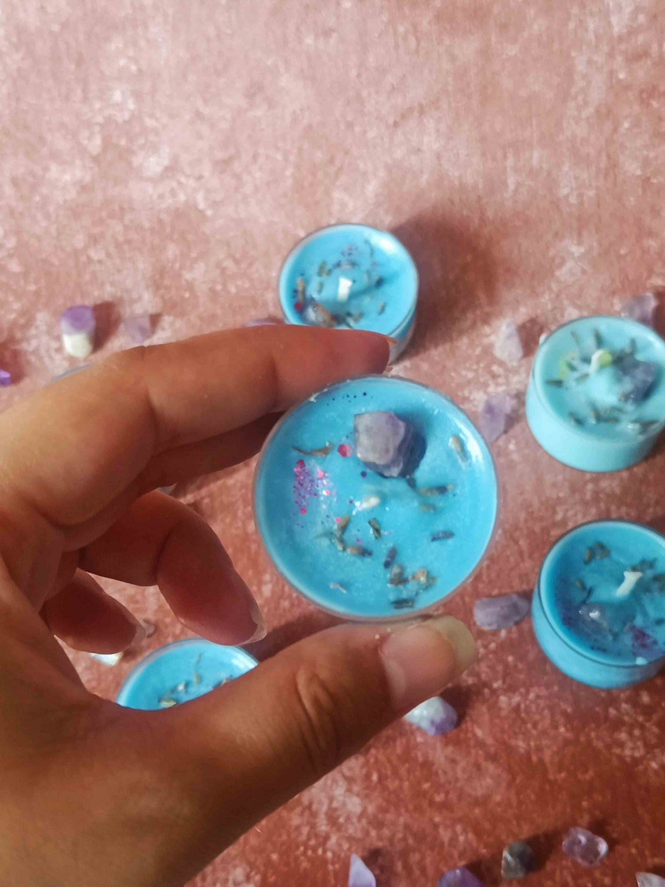 Our Lavender & Amethyst Petal Tealights are unique scented candles that contain natural natural lavenders and crystals, making them popular among those who practice yoga, meditation, and other spiritual practices. Each candle has a specific intention and contains healing crystals .These tealights are suitable for personal use and make great gifts for anyone needing self-care and relaxation.