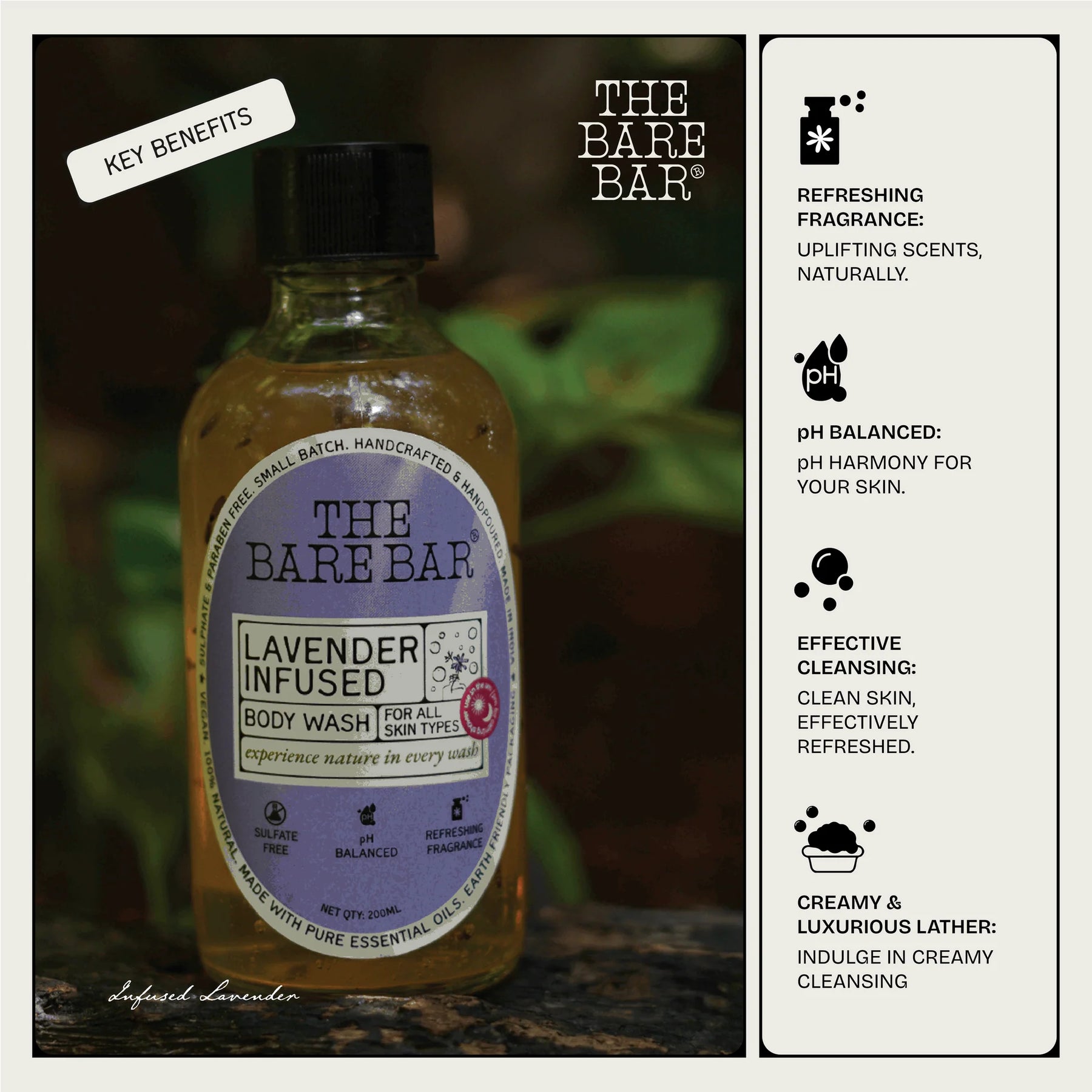Lavender Infused Body Wash is made up of natural ingredients without sulfate and parabens. It's vegan and Natural!