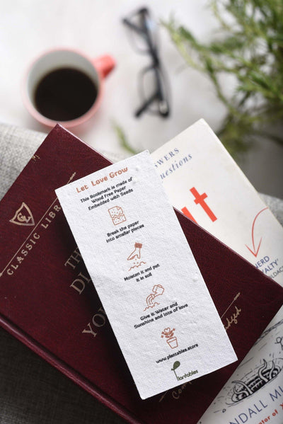 Wet the bookmarks and plant them after you are done with a book and move on to the next read while Seedie sprouts a couple of leaves for you.