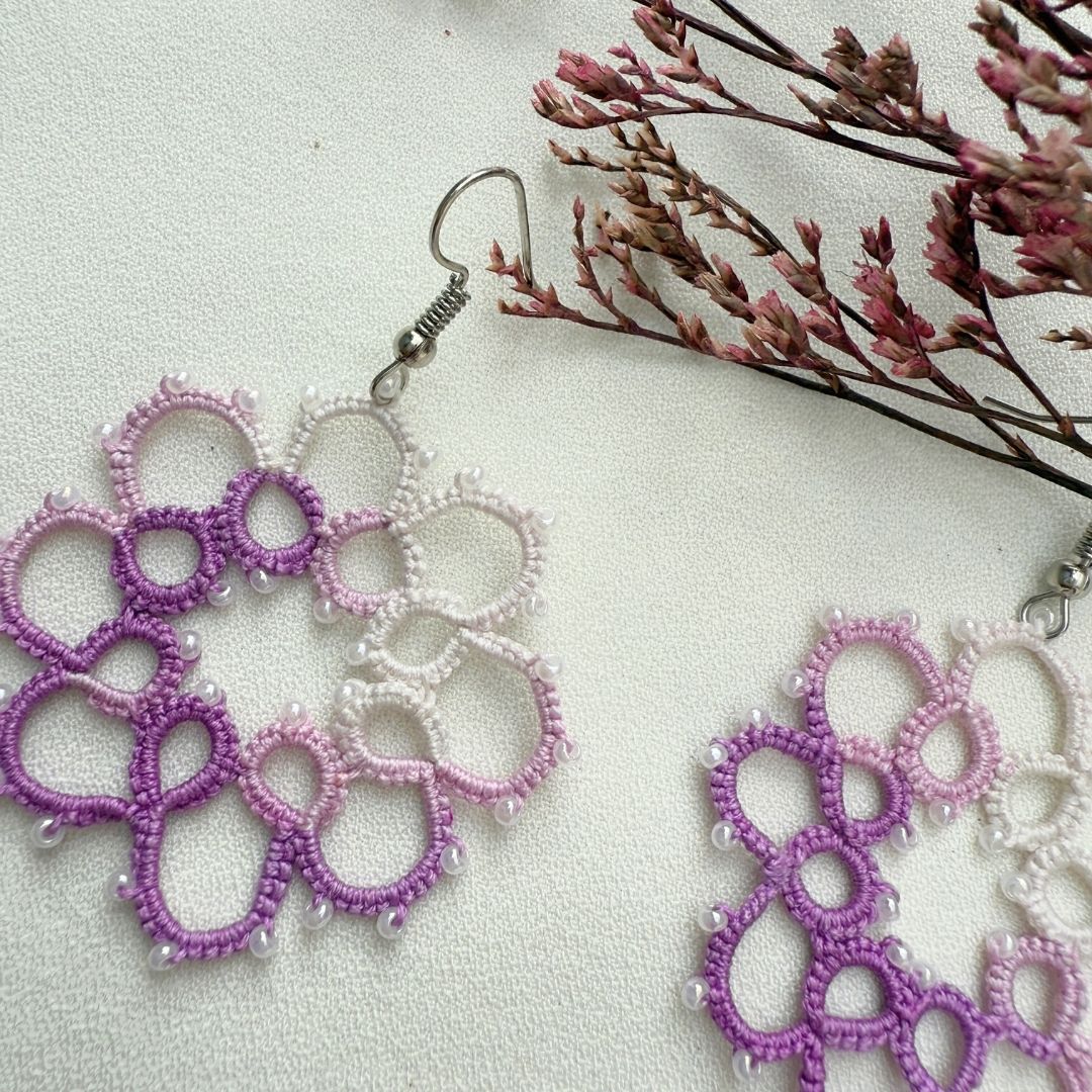 "Beautifully crafted with cotton thread and delicate beads using the age-old technique of tatting, these earrings feature intricate lacework created knot by knot with shuttle tatting. Handmade with great care, each pair is exclusively crafted using this traditional method. These super cool, extremely lightweight earrings are versatile enough to complement any attire, ensuring you can wear them all day with ease. As artisanal items entirely made and decorated by hand, small imperfections denote the originality of the product. So, hop on board and add a touch of artisanal charm to your ensemble! Dimenions: L 4 x W 4 cm (approx) Please note: Delivery takes 7-10 days in some cases."