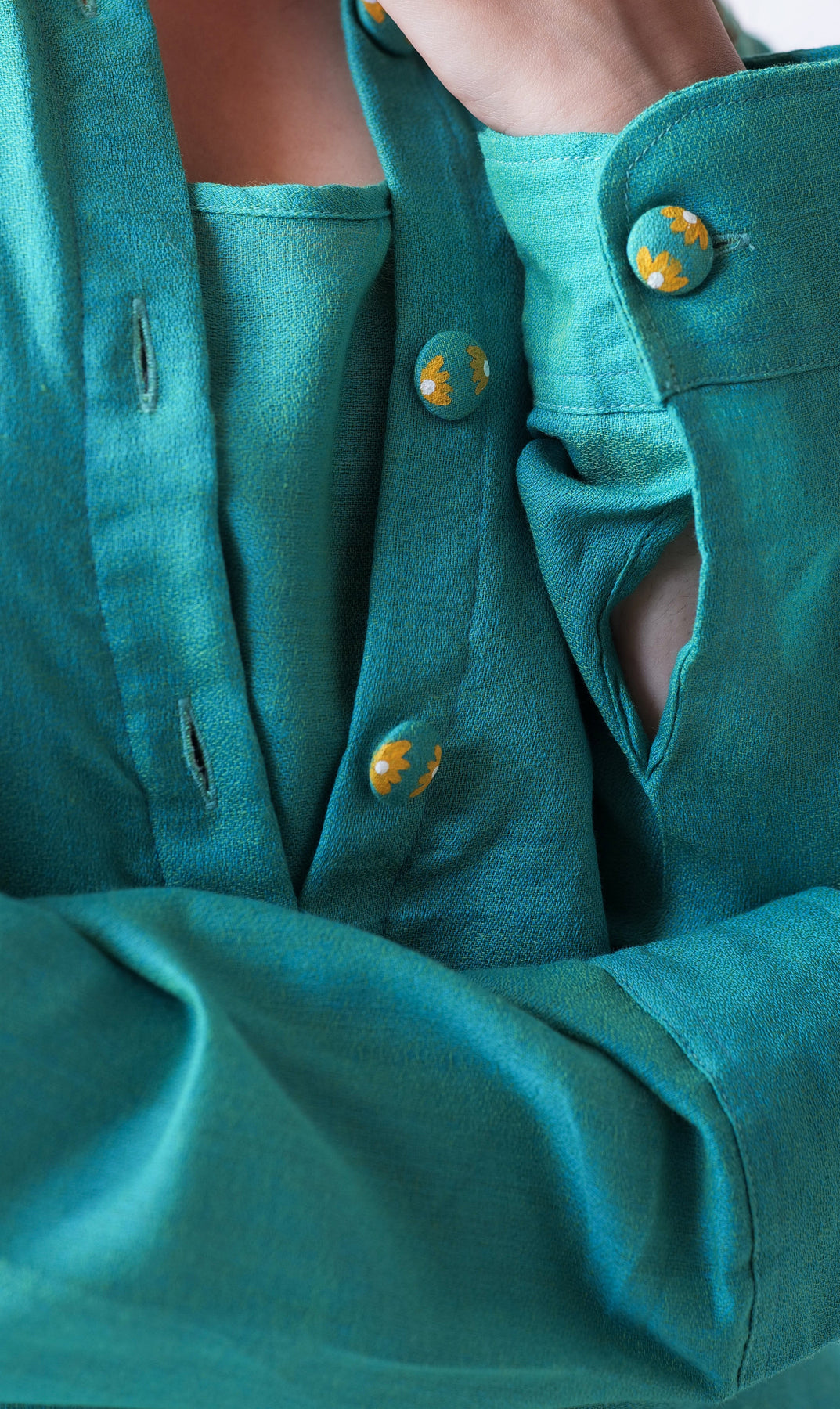 - Adorned with exquisite hand-painted buttons inspired by vibrant summer blooms like lily.