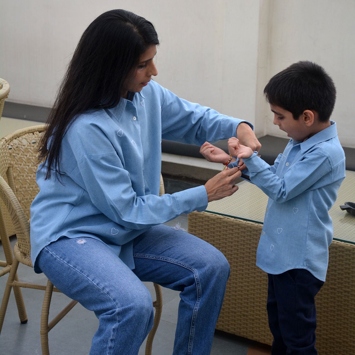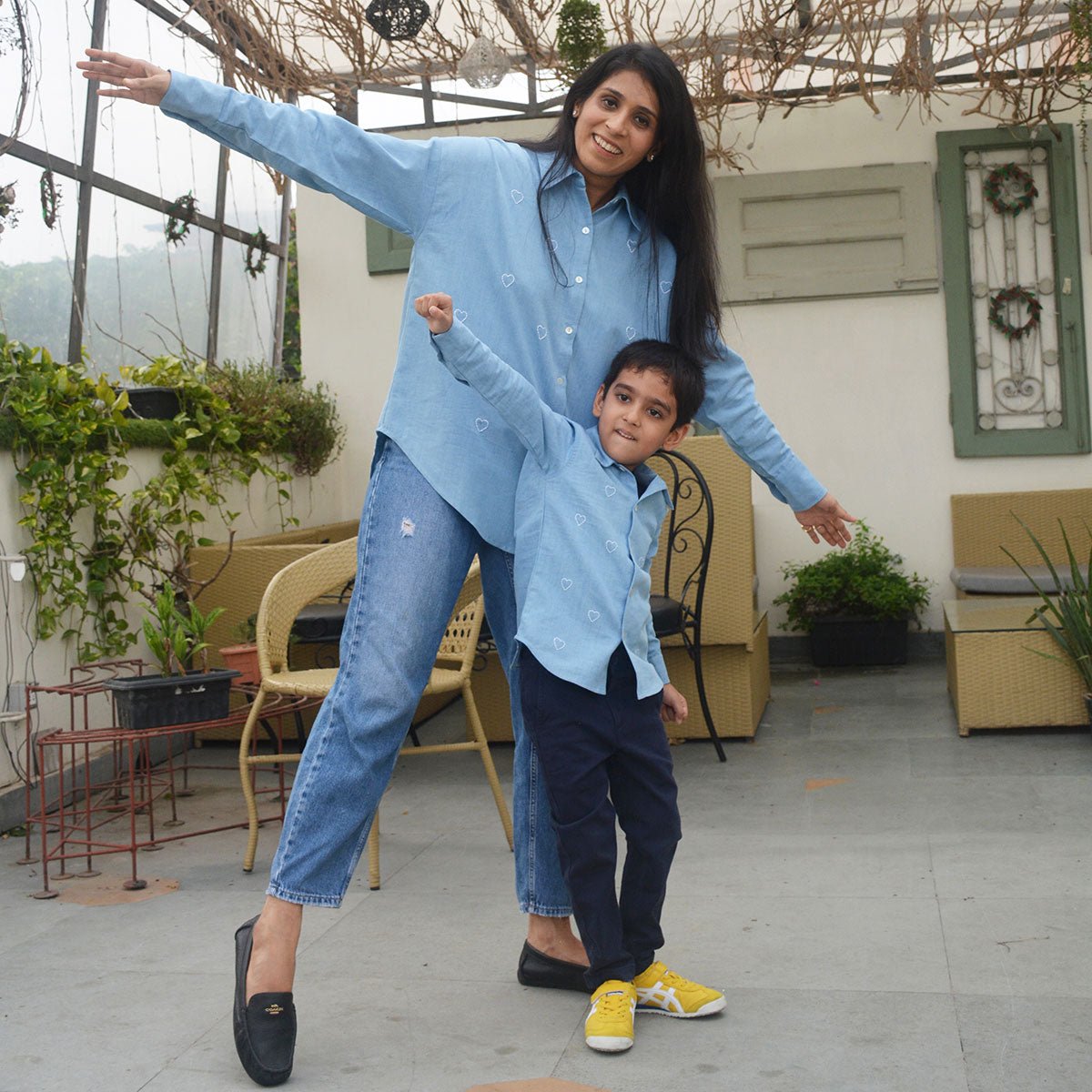 This adorable denim shirt is all about sweet details! Featuring delicate hand-embroidered little hearts, it adds a charming, playful touch to the classic denim look. Soft and durable, with a button-down front and rolled-up sleeves, this shirt is perfect for women who love a mix of style and fun. A wardrobe essential with a dash of love!