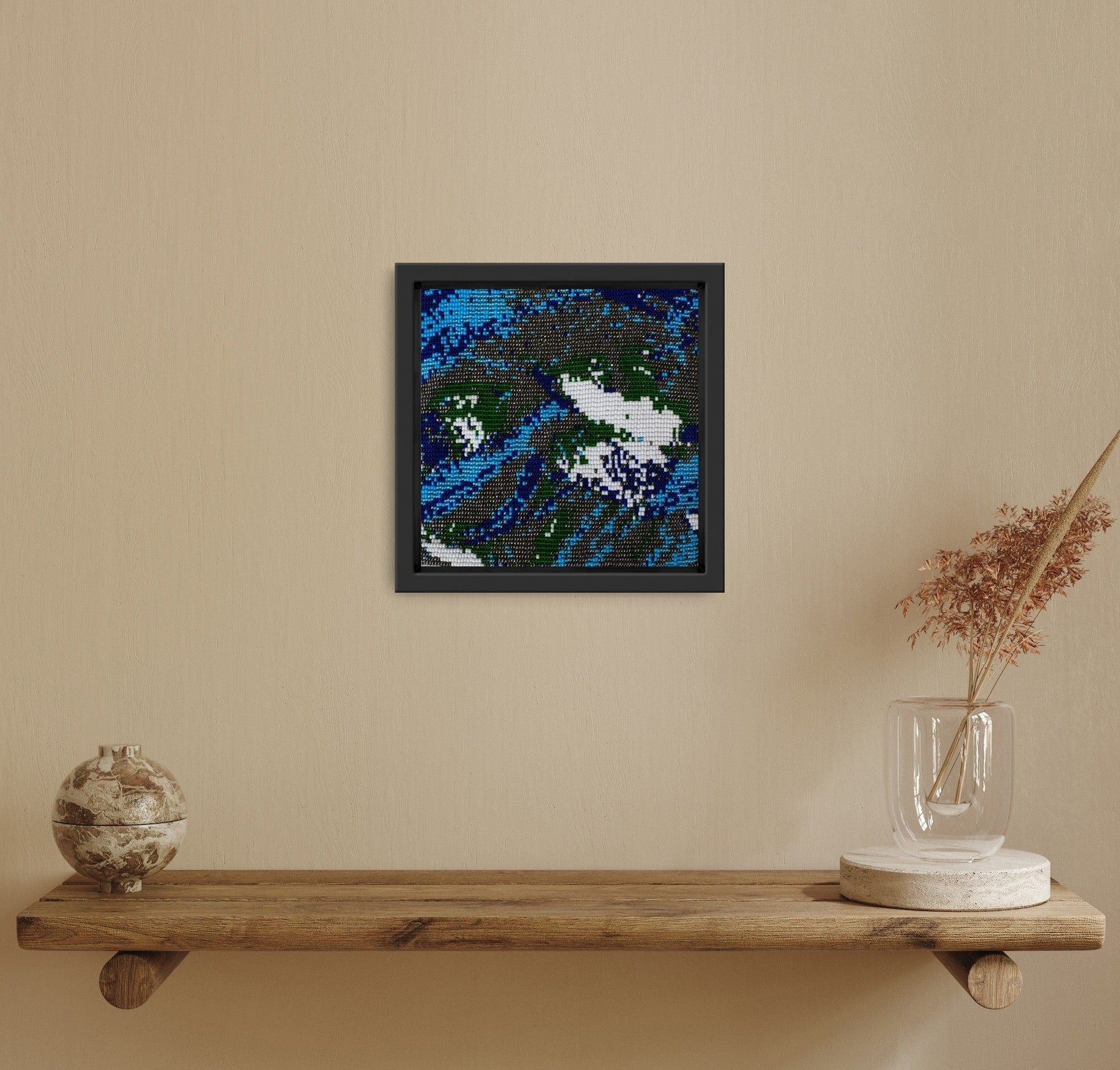 About the Collection: Handwoven on simple wooden looms by artisans in Bhavnagar, Gujarat, this piece embodies India’s fading bead-loom tradition. Tiny glass beads are woven into intricate patterns inspired by nature and geometry, preserving a craft once used to create torans that symbolized welcome and good fortune. Each artwork tells a quiet story — a meditative play of texture, light, and patience.