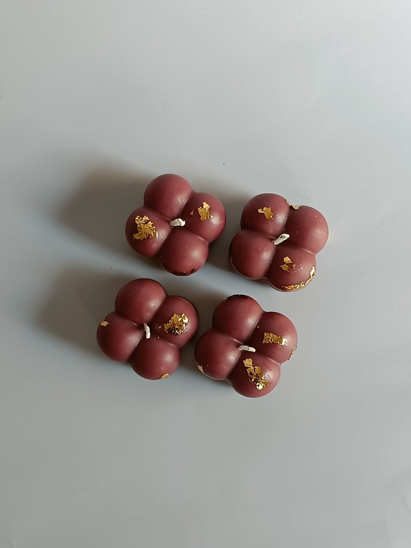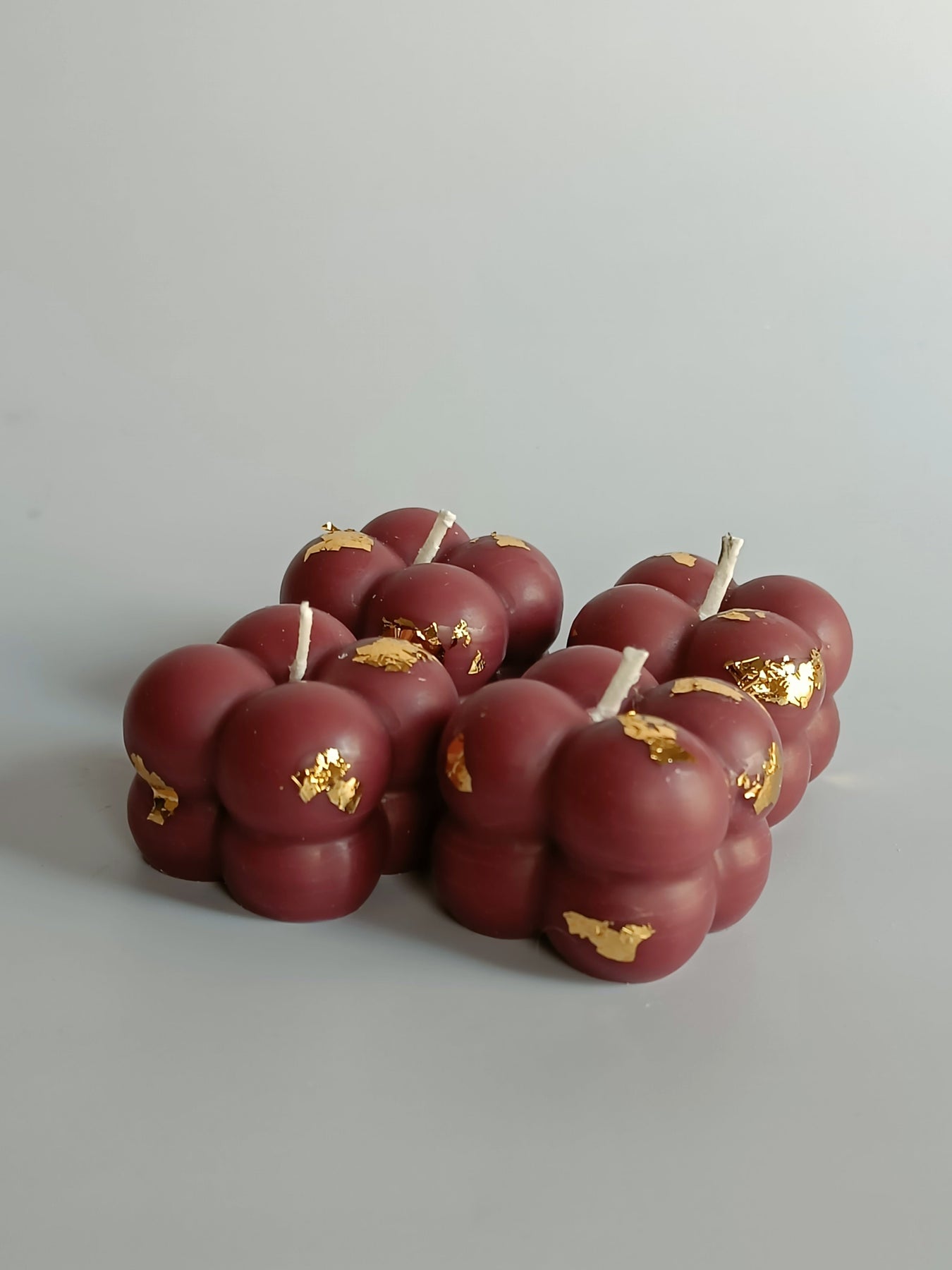 Crafted from organic soy wax, these burgundy candles are enhanced with delicate gold foil accents, adding a luxurious touch to their charming design. Perfect as a romantic gift or a centerpiece for your celebration, it brings a touch of sophistication and intimacy to any space.
