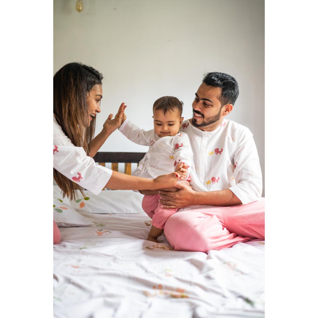 Masaya Cute Pink and White Jhabla set-Masaya Organic Baby Jhabla Pajama Set - Colours of the Earth - Elle Pink