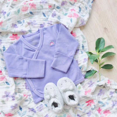 Surround your bub in the comfy goodness of bamboo muslin round the clock no matter how you're using it—stroller cover, burp cloth, changing table cover, tummy time blanket or nursing cover to name just a few!