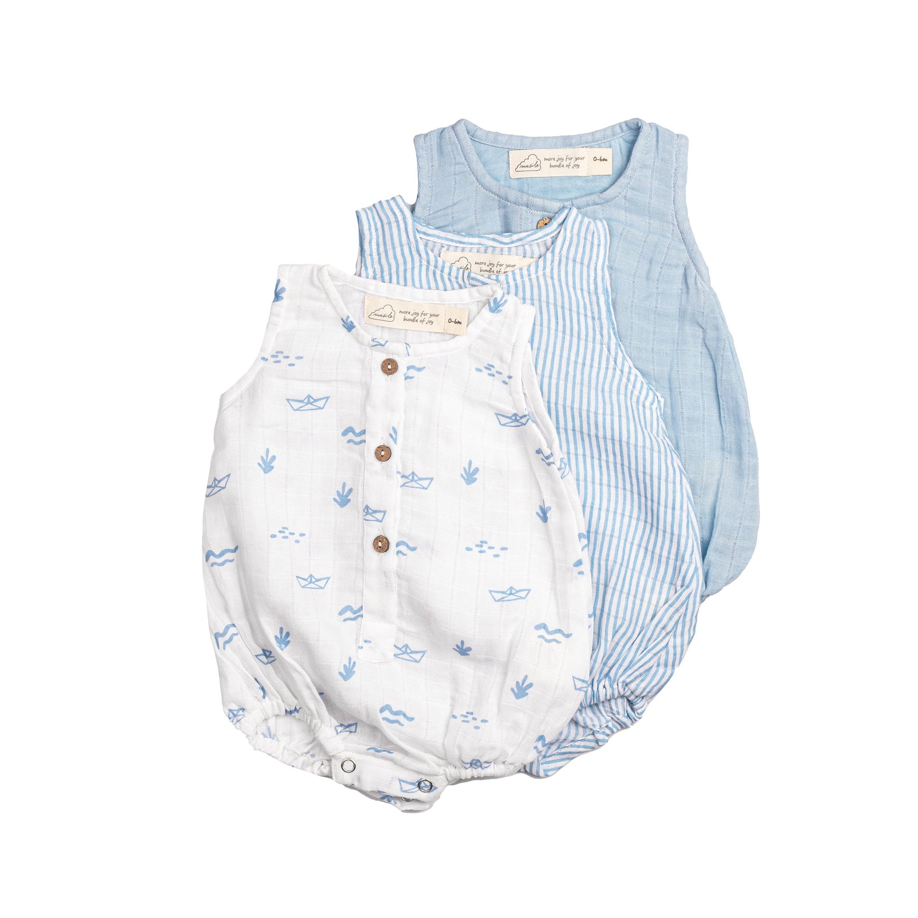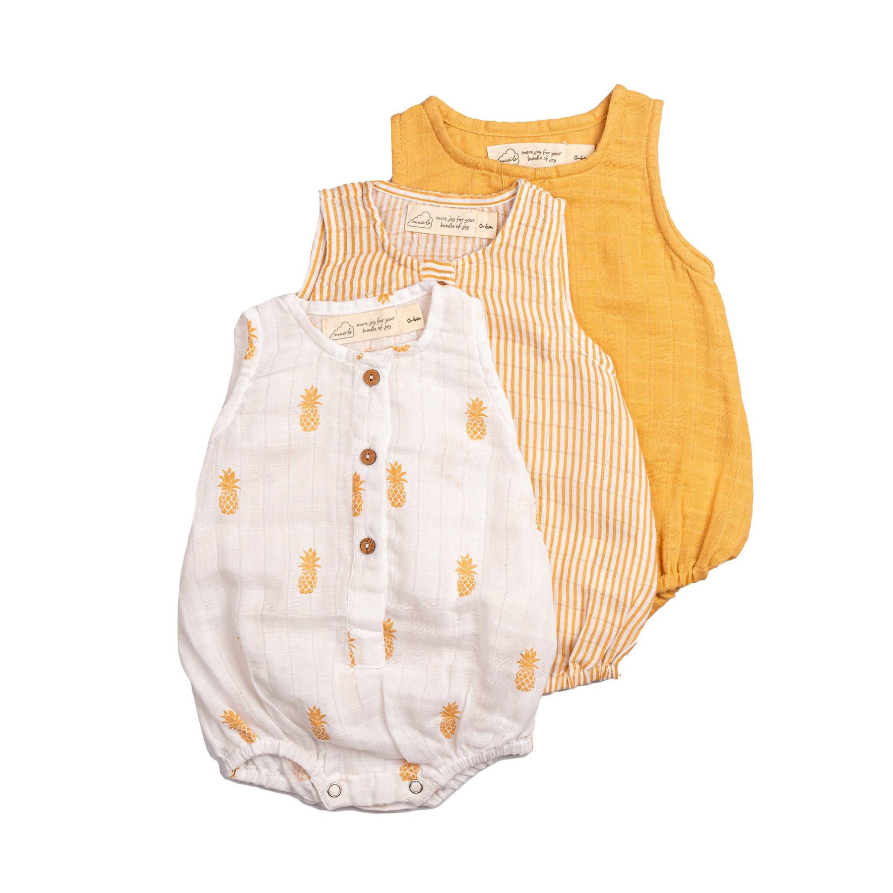 Organic Cotton Muslin Baby Romper 0 -6 Months (Pack of 3)
