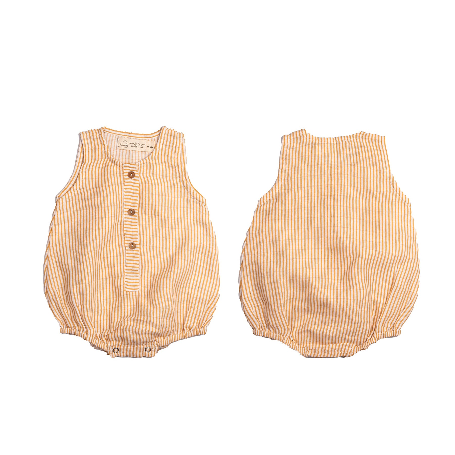 Our soft muslin romper is perfect for babies. Made from 100% organic cotton - it's breathable and comfy! Keeping your baby's delicate neck in mind, this piece features an extra long front opening so it's easy to put on your baby. What's not to love?