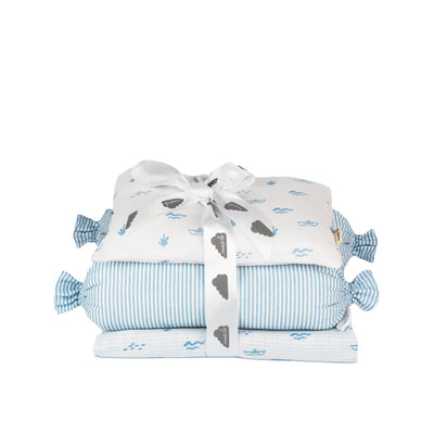 Welcome the little one home in grand style! This gift set features irresistibly soft sleep essentials made with organic cotton – just what every baby needs to drift off into dreamland!
