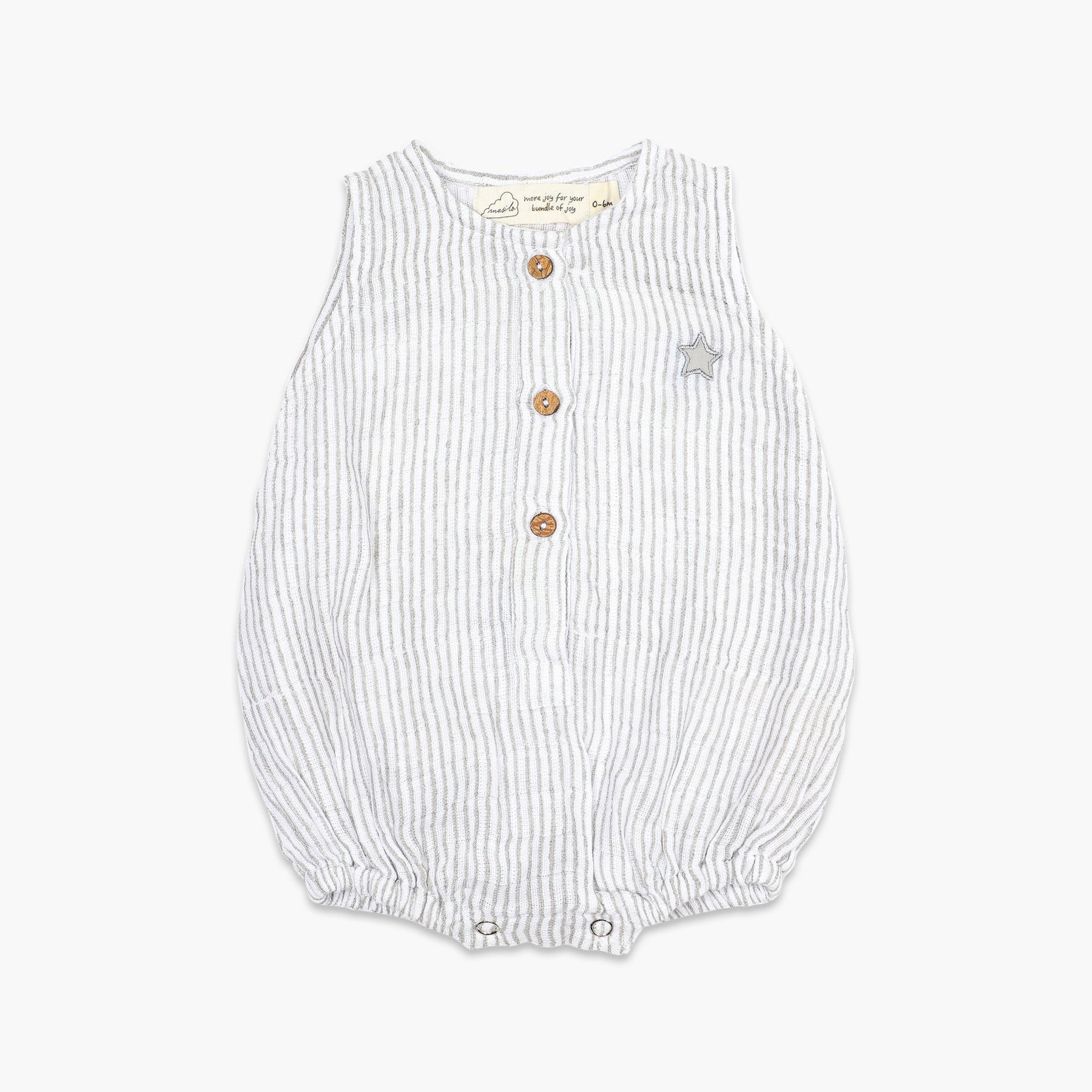 Our soft muslin romper is perfect for babies. Made from 100% organic cotton - it's breathable and comfy! Keeping your baby's delicate neck in mind, this piece features an extra long front opening so it's easy to put on your baby. What's not to love?