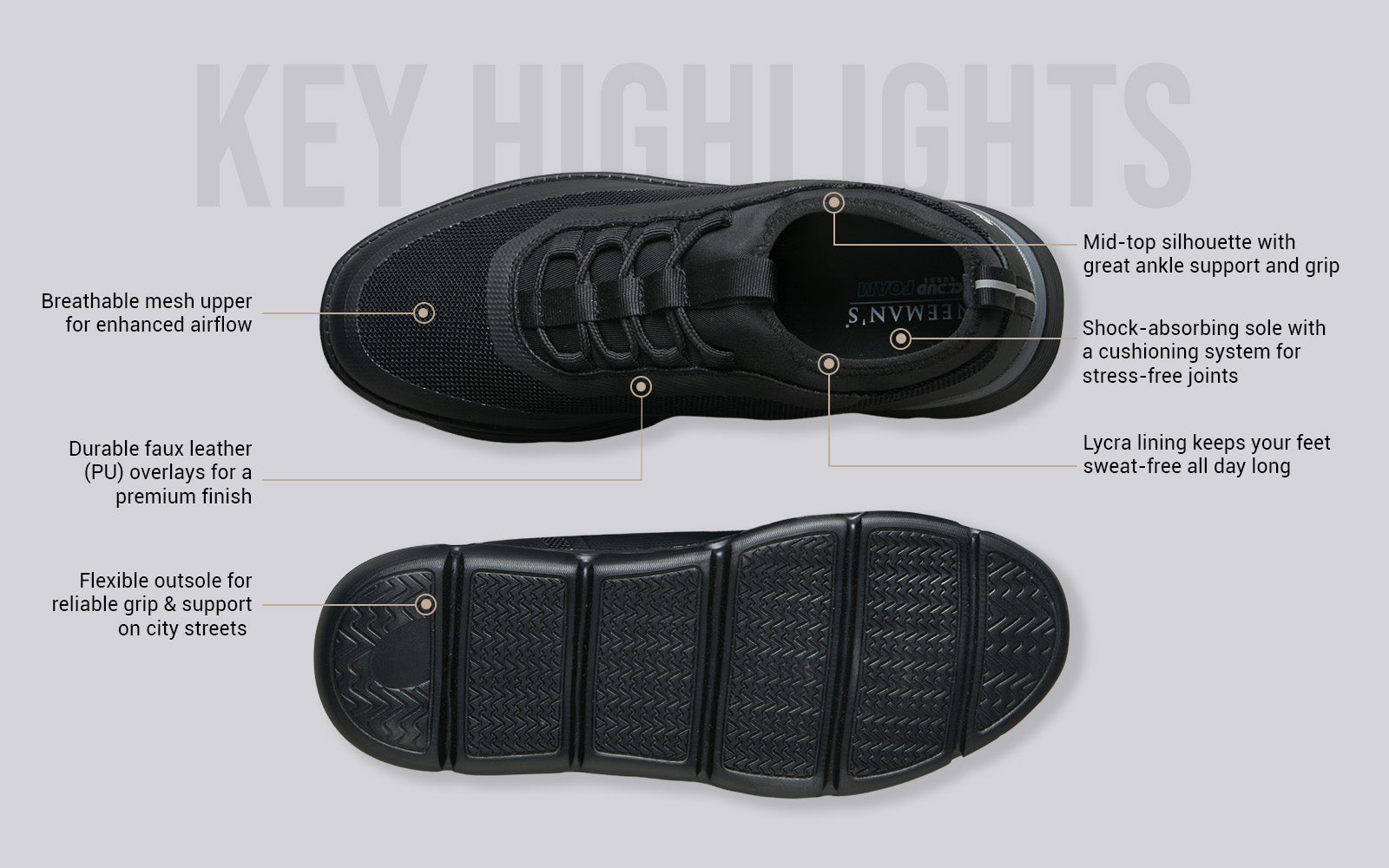 Inspired by the high-ankle sneaker era, the Mid-top sneakers hug your ankles without feeling heavy. Perfect if you want a bit more grip and a lot more style. And the sole? Lightweight, cushioned, and built to handle long walks. Plus, the moulded outsole gives you a solid grip, ideal for city life, that keeps you on your feet.