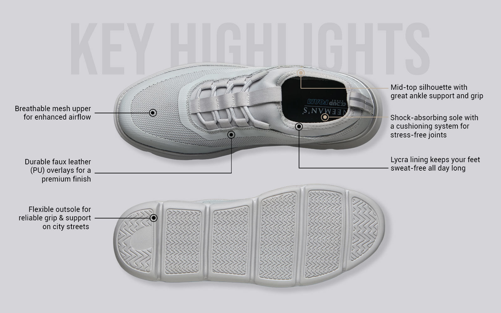 Inspired by the high-ankle sneaker era, the Mid-top sneakers hug your ankles without feeling heavy. Perfect if you want a bit more grip and a lot more style. And the sole? Lightweight, cushioned, and built to handle long walks. Plus, the moulded outsole gives you a solid grip, ideal for city life, that keeps you on your feet.
