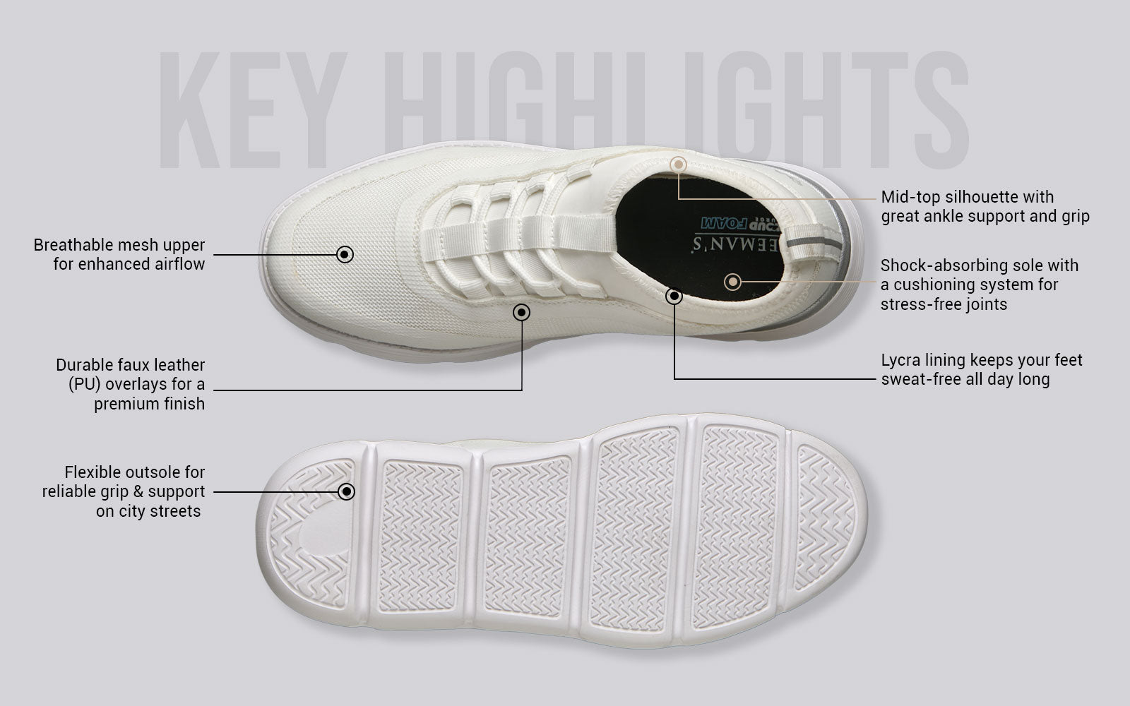 Inspired by the high-ankle sneaker era, the Mid-top sneakers hug your ankles without feeling heavy. Perfect if you want a bit more grip and a lot more style. And the sole? Lightweight, cushioned, and built to handle long walks. Plus, the moulded outsole gives you a solid grip, ideal for city life, that keeps you on your feet.