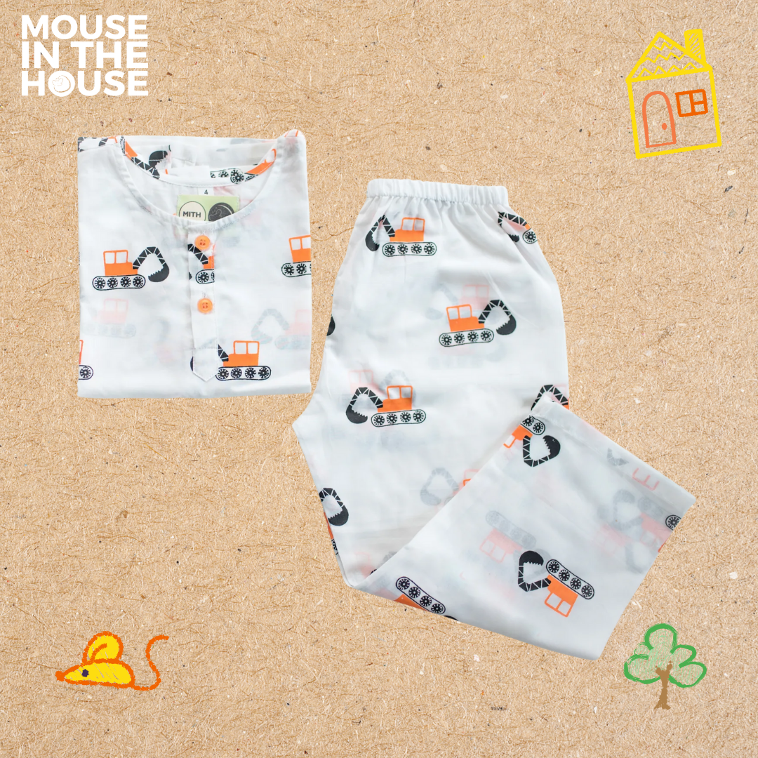 🚜 The Mighty Bulldozer – Unisex Cotton Nightwear 🚜✨