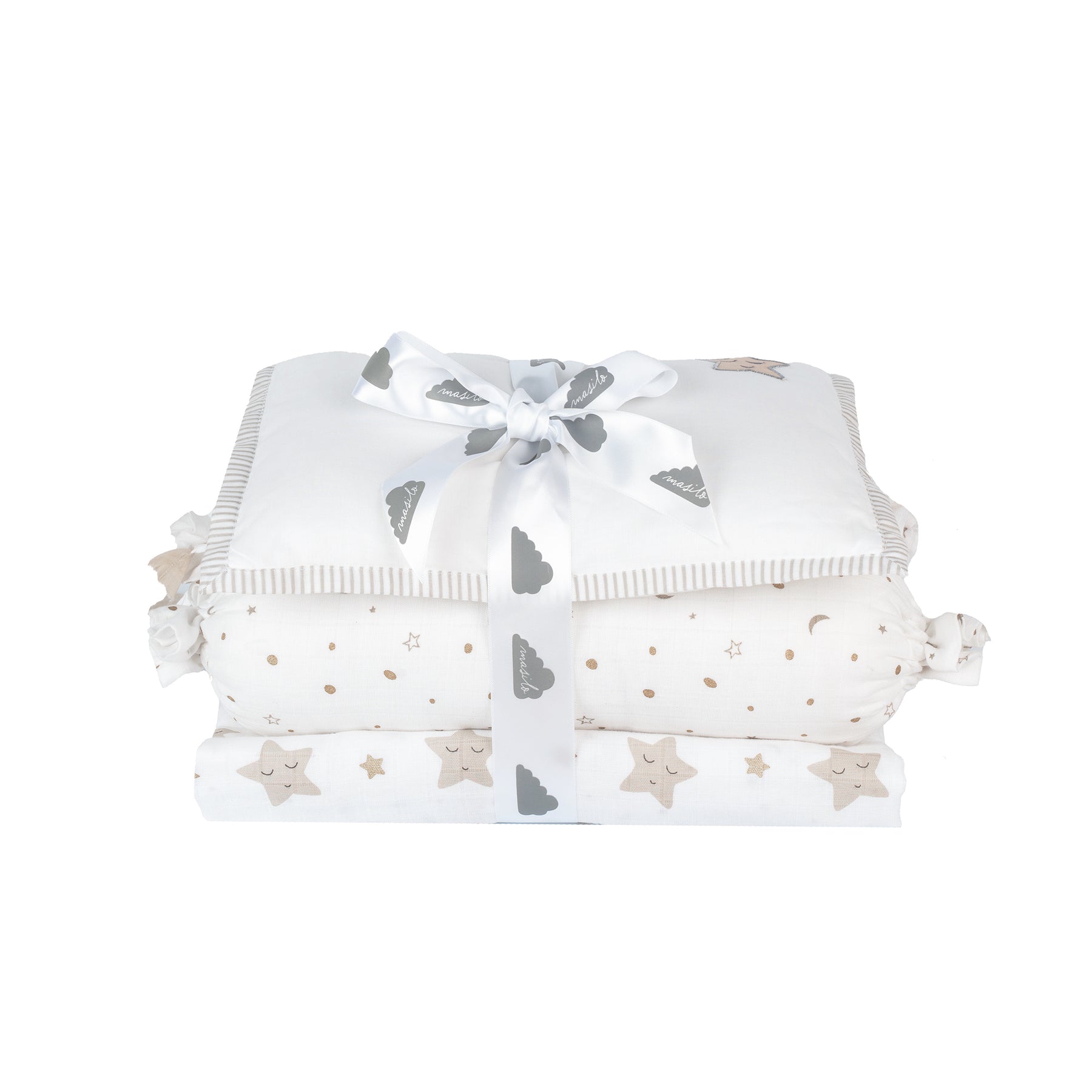 Welcome the little one home in grand style! This gift set features irresistibly soft sleep essentials made with organic cotton – just what every baby needs to drift off into dreamland!