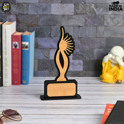 Gift Kya De Momento Awards and Trophy for Winner, Beautiful Black and Bamboo Design with Wooden Cutwork, Easy Print and Sticker Paste Your Matter, Eco Friendly Corporate Gifts (Size 10x6)