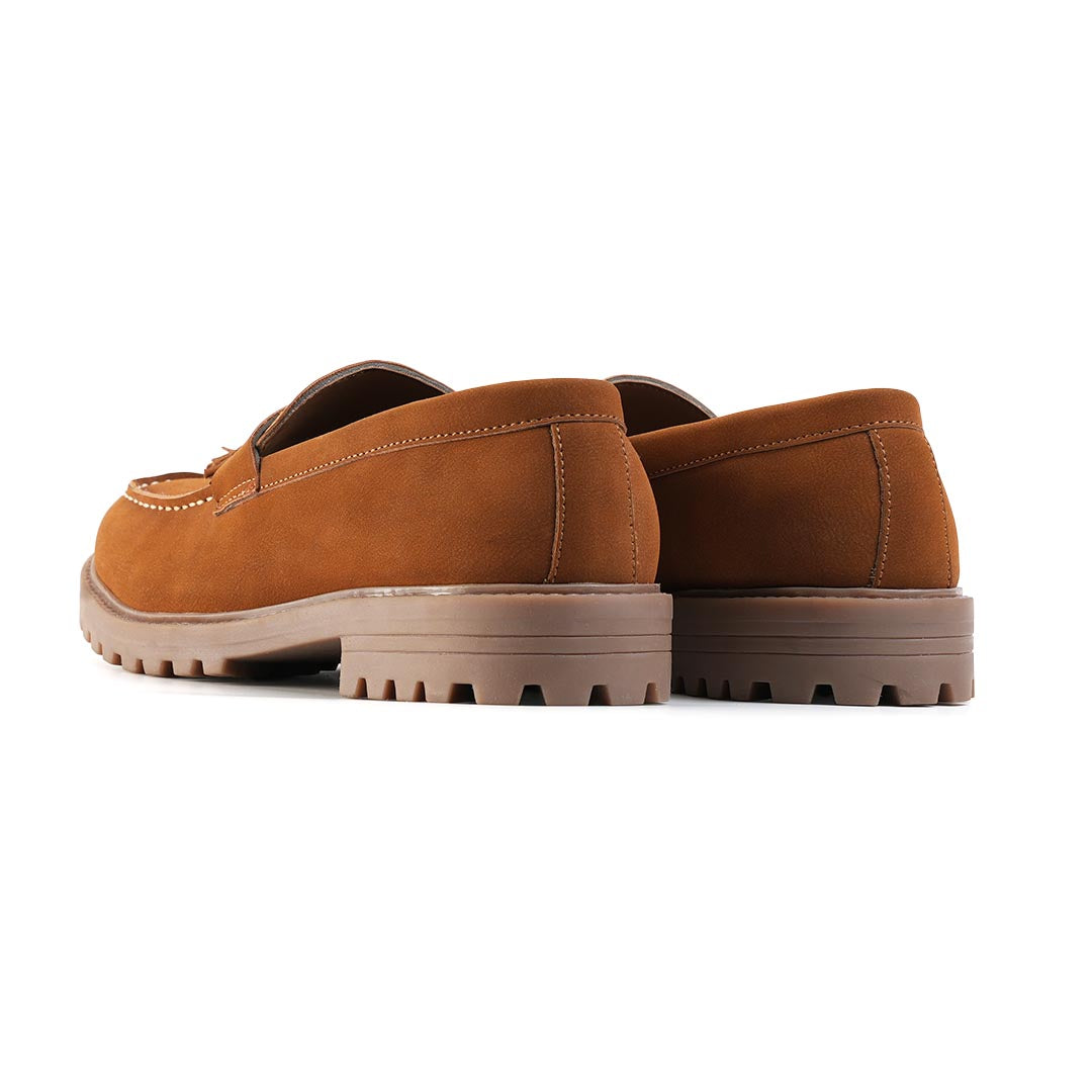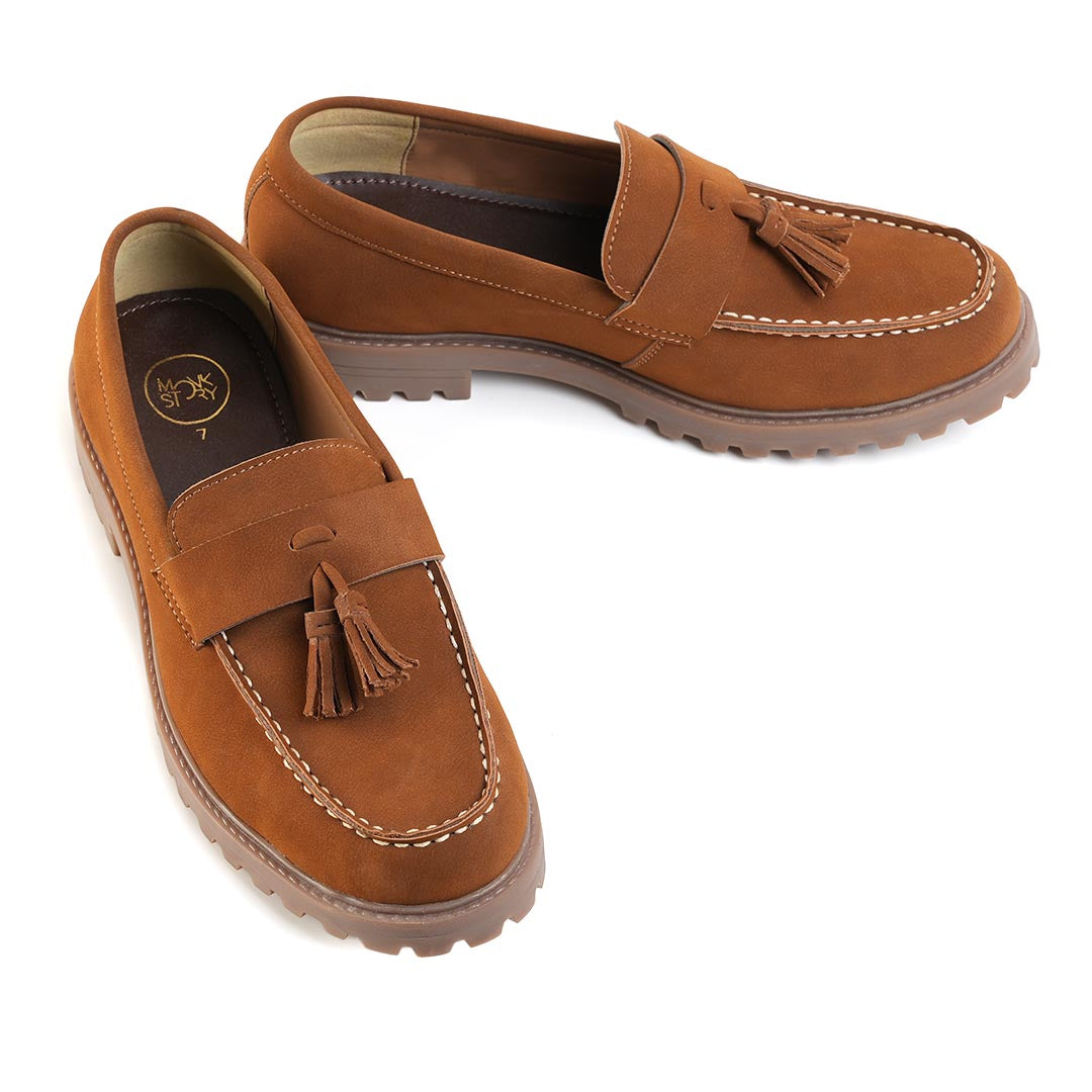 Classic charm meets modern edge. These tan tassel loafers are crafted from soft nubuck vegan leather, combining luxurious texture with a rugged sole for grip and all-day comfort. Perfect for transitioning from boardroom to bar.