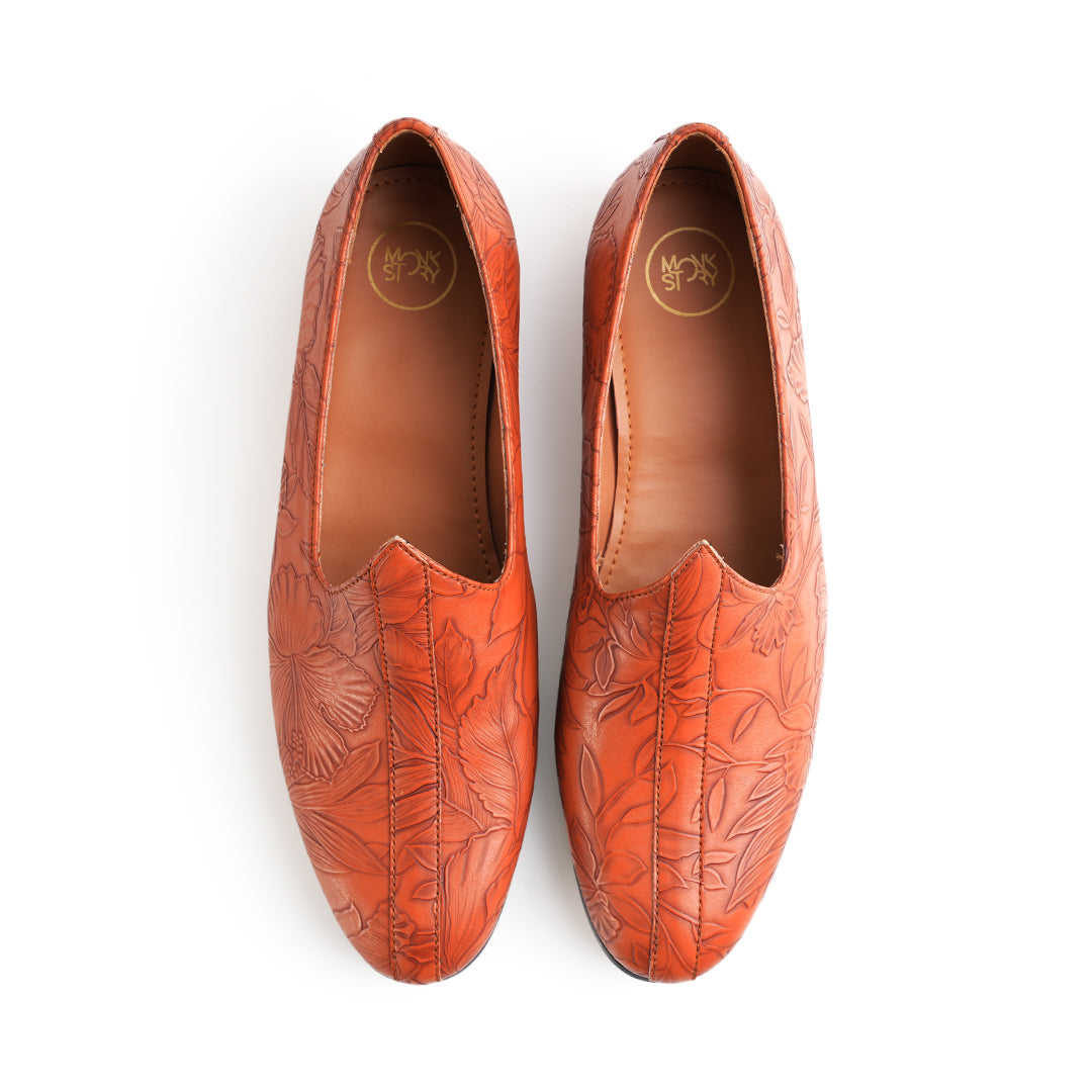 The Tan Floral Vegan Slip-Ons combine rich tones with delicate craftsmanship. Embossed with an intricate floral pattern, these slip-ons bring a touch of artistic elegance to your everyday wardrobe. Made from luxurious vegan leather, they ensure comfort and sustainability in equal measure.