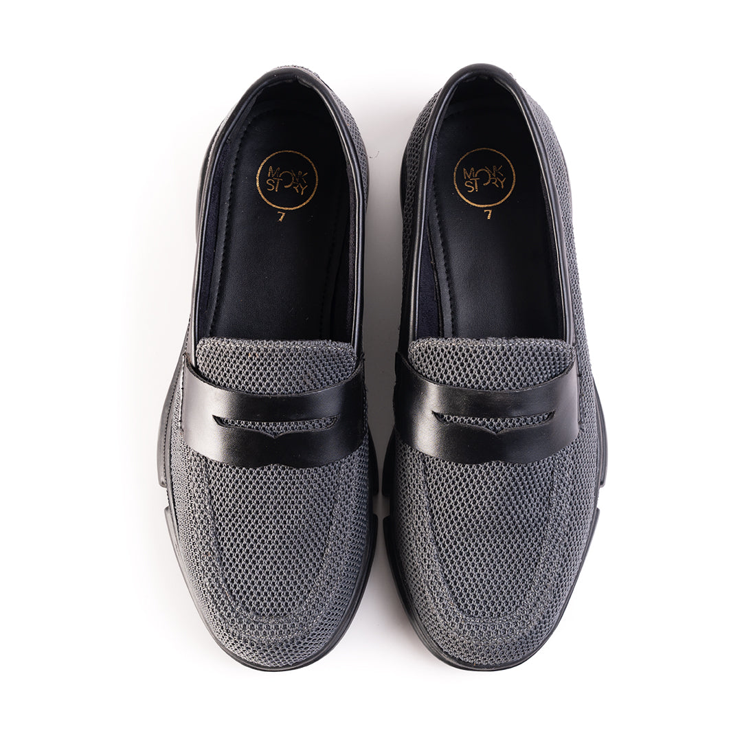 Engineered for lightness. Styled for every setting. The Monkstory Gravity Lift Mesh Loafers in Grey Mesh & Black bring together breathable comfort, sharp detailing, and our signature Gravity Lift™ sole—so you can stay on your feet, in style, all day long. With its modern penny loafer silhouette and tech-knit upper, this is footwear reimagined for the fast-moving, fashion-conscious man.