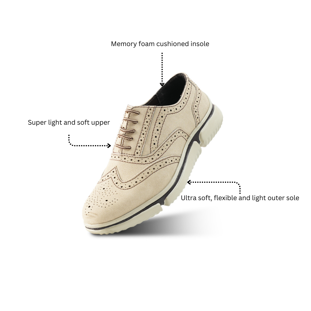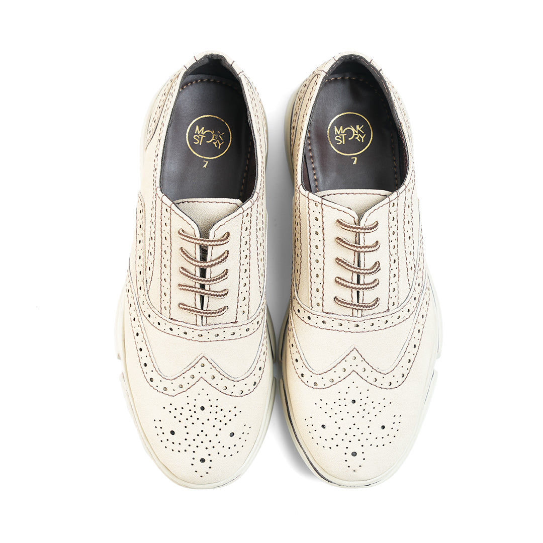 Monkstory Gravity Lift Ultra-Comfort Brogue Sneakers - Beige