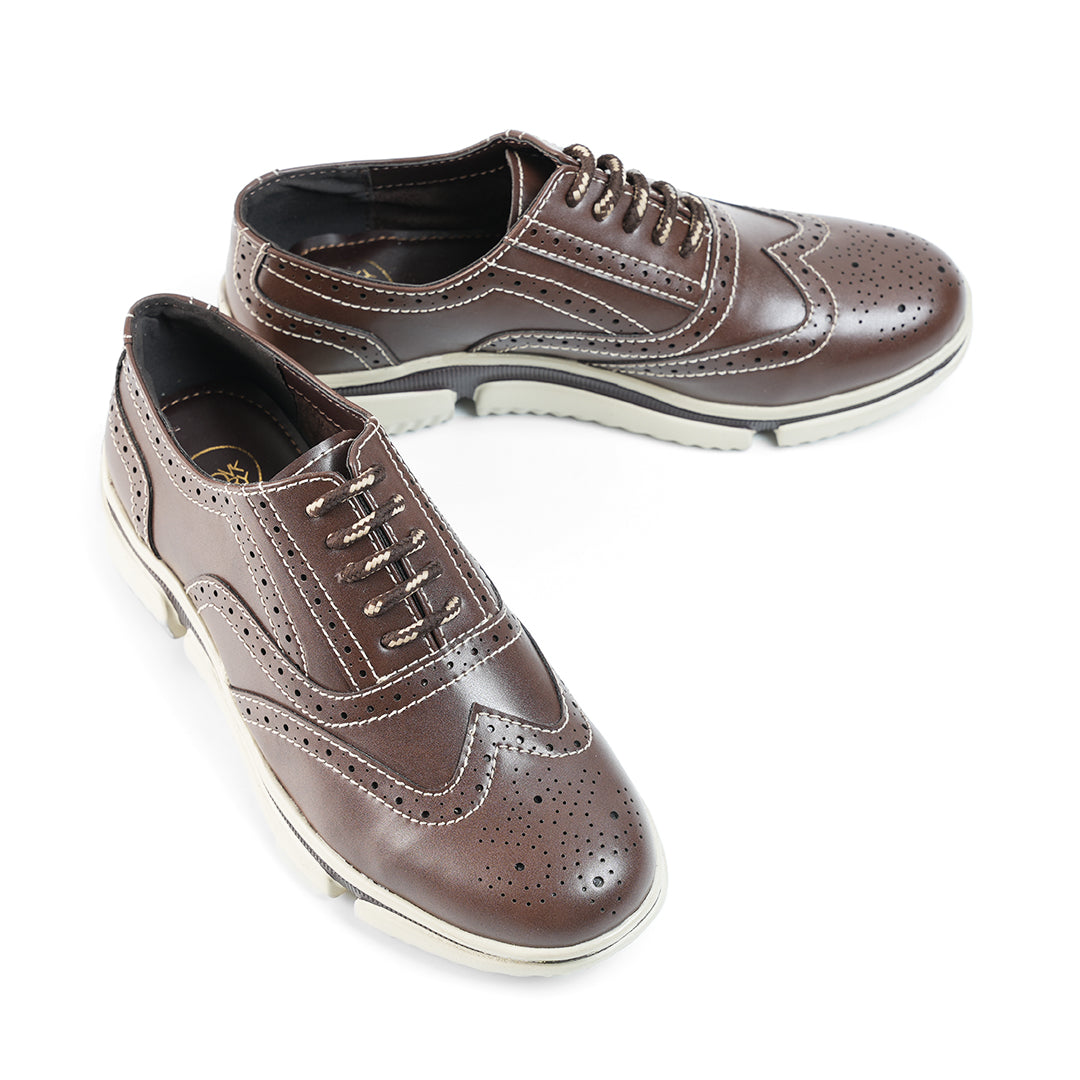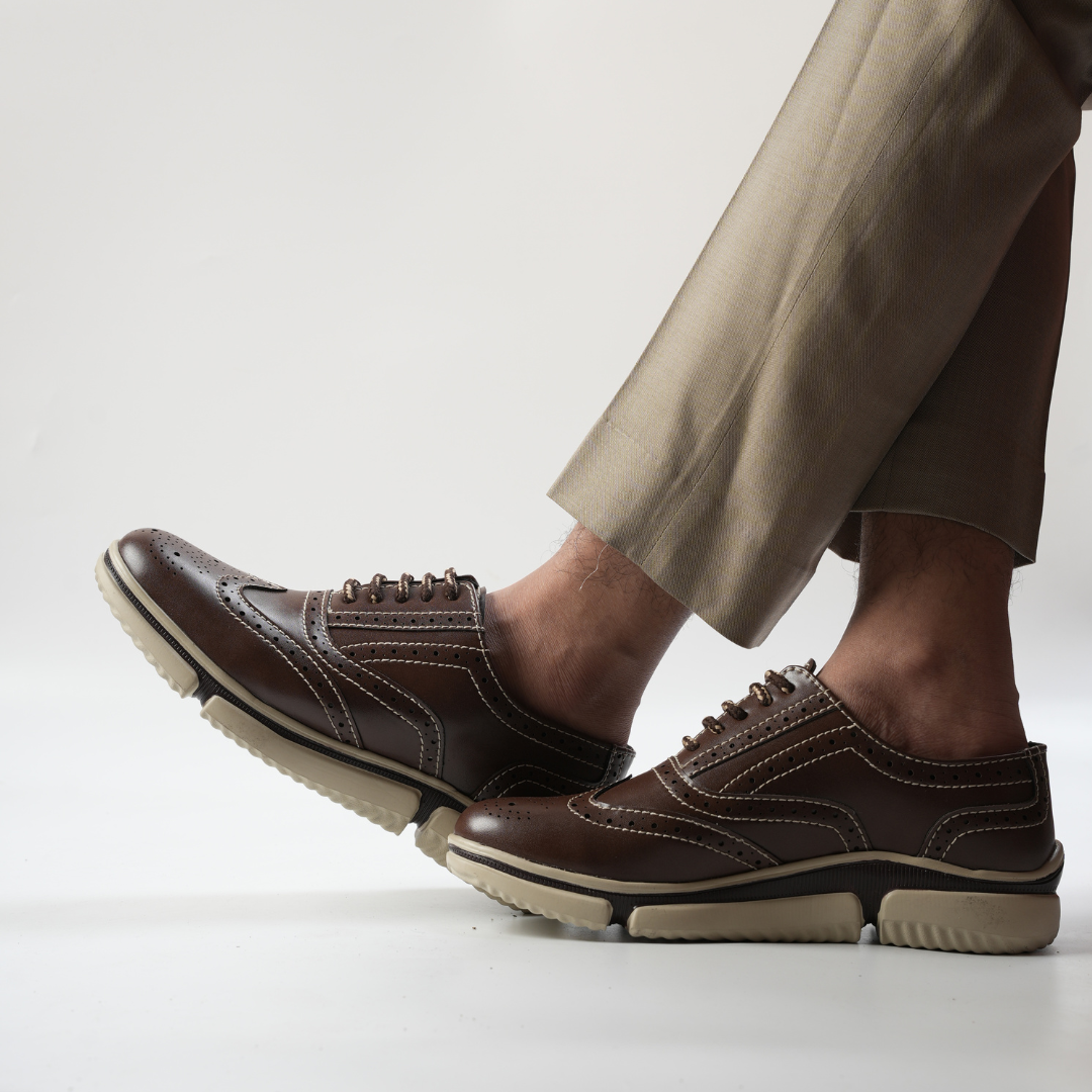 A bold take on classic brogue styling, the Coffee Brown Gravity Lift Sneakers blend heritage aesthetics with modern sneaker technology. The dark brown vegan leather upper exudes sophistication, while the Gravity Lift cushioned sole ensures superior comfort. Whether you're heading to a business meeting or a weekend outing, these shoes keep you looking sharp and feeling great.