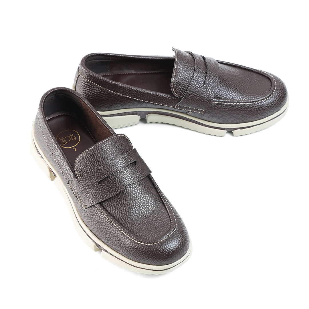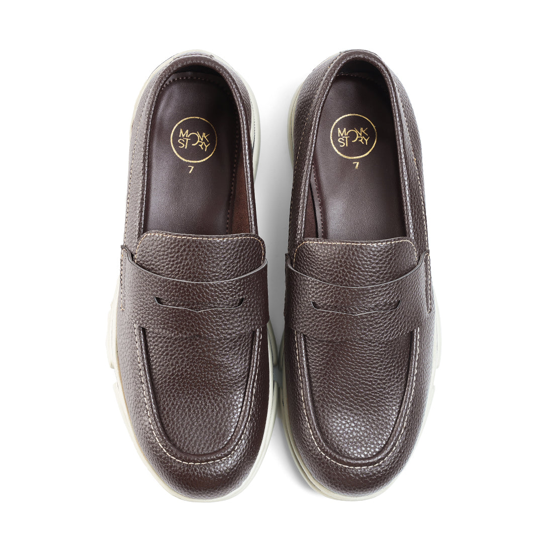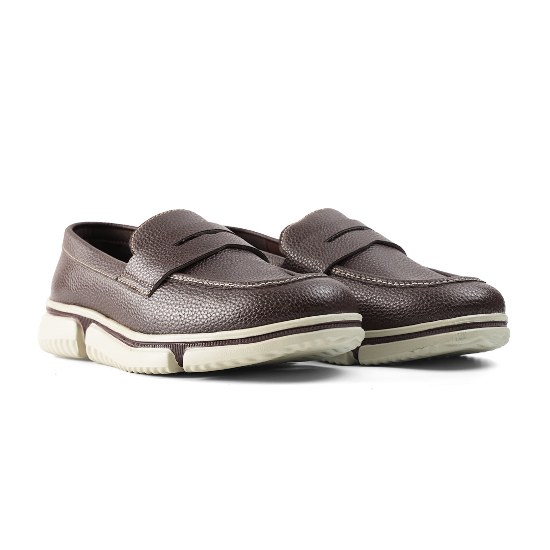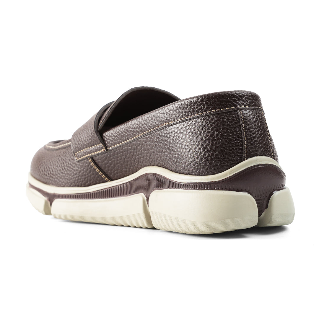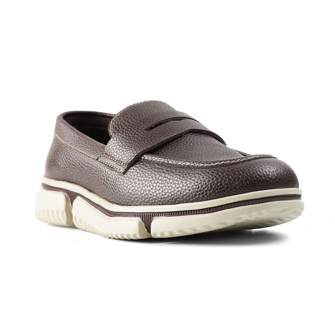 Designed for the modern gentleman, these Dark Brown Penny Loafers bring a sophisticated touch to your everyday wear. Made with textured vegan leather and featuring a sleek slip-on design, they ensure effortless style. The innovative Gravity Lift sole provides cloud-like cushioning, making them perfect for workdays and weekend outings alike.