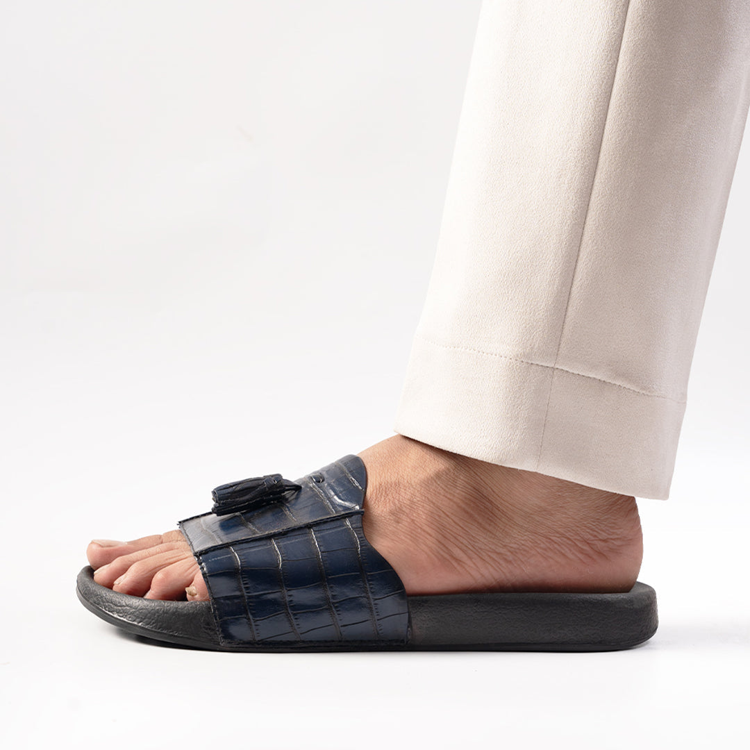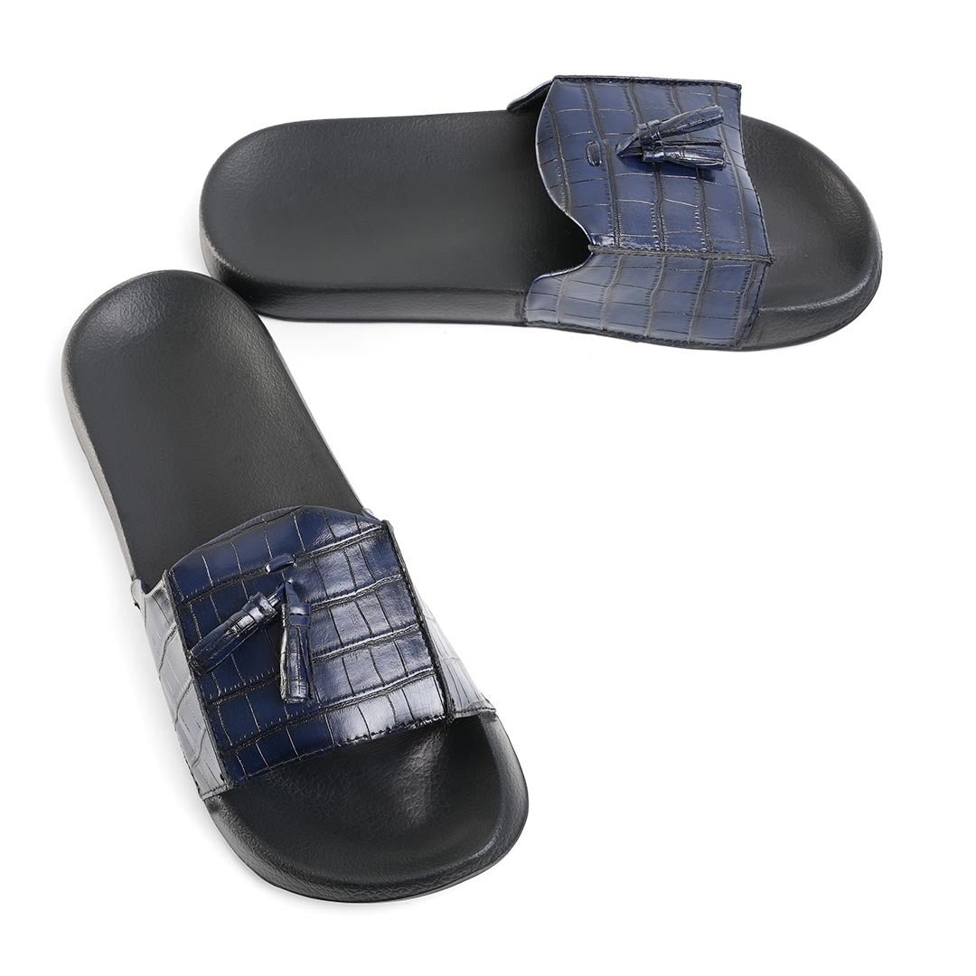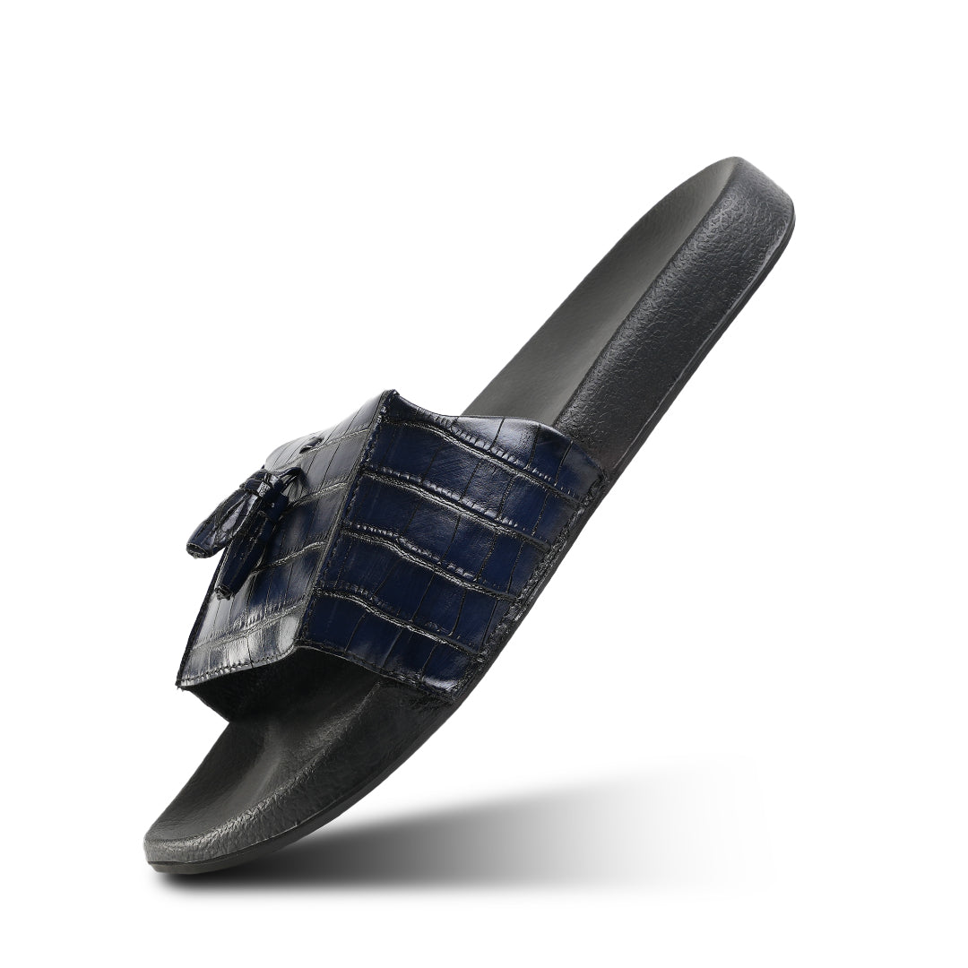 Drip meets discretion. The Monkstory Old Money Tassel Sliders in Navy Blue embody a cool, coastal refinement. With a deep blue croc-textured vegan leather strap and elegant tassel detailing, these sliders strike the perfect balance between playboy and poet. Whether you’re pool-hopping in Mykonos or gliding through a weekend brunch, these deliver suave comfort at every step.