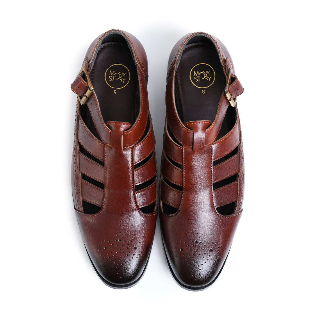 A sandal born from legacy. The Monkstory Pathani is a modern revival of subcontinental heritage, reimagined for the new-age man. Crafted in warm tan vegan leather with intricate brogue detailing, this closed-toe silhouette draws inspiration from the traditional Pathani style worn by warriors, royals, and rebels alike.