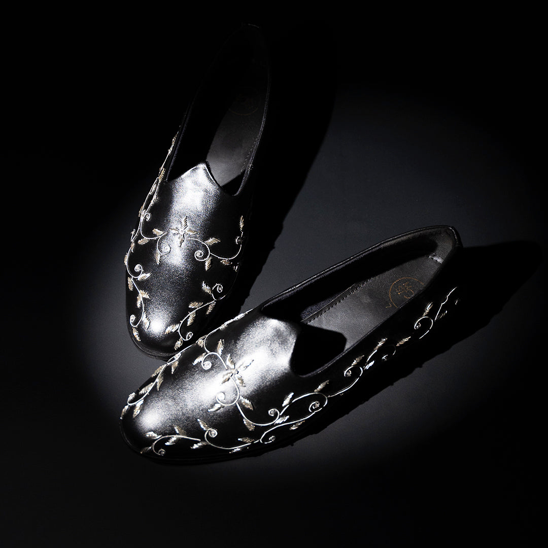 Monkstory Regal Floral Zardosi Mojari – Black