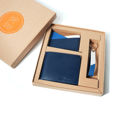 Introducing the Monkstory Signature Gift Box, your ultimate solution for thoughtful and stylish gifting on various occasions like birthdays, anniversaries, and Raksha Bandhan. This meticulously curated gift box features a trio of finely crafted essentials – a Monkstory Wallet, Cardholder, and Keychain. Made from premium PU leather and meticulously handcrafted, these accessories exude elegance and charm. Monkstory Wallet is a versatile and functional accessory, handcrafted from durable PU leather. This wallet offers ample space for cards, cash, and essentials, making it a perfect everyday companion. Monkstory Cardholder is compact and chic, it is handmade with precision from high-quality PU leather. It's designed to keep your essential cards organized while adding a touch of style to your routine. The Monkstory Wallet and Cardholder come with a touch of minimal branding on the front, adding a subtle yet distinctive element to the design. Whether it's for storing cards, cash, or keys, these accessories offer both functionality and style. The accompanying Keychain is a stylish and practical accessory that adds a touch of sophistication to your everyday carry. Make every occasion special with the Monkstory Signature Essentials Gift Box – a handcrafted ensemble of accessories that are sure to delight and impress.