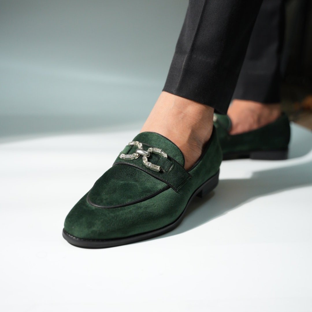 Sophistication has a new shade—deep royal green. These Monkstory loafers redefine understated luxury with their lush velvet exterior and polished silver bit detailing. A versatile pick that balances modern minimalism with timeless elegance.