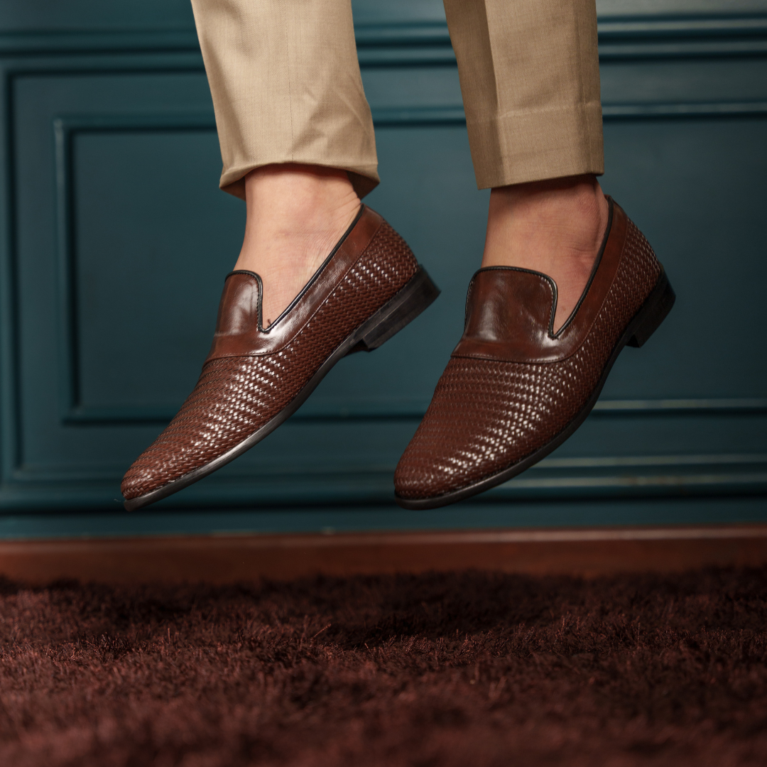 Step into refined elegance with the Brown Woven Vegan Loafers, where classic craftsmanship meets modern design. These loafers feature a rich brown hue and a woven pattern that adds texture and depth, perfect for those who appreciate timeless style with a contemporary twist. Made from the finest vegan materials, they ensure comfort and sustainability without compromising on style.