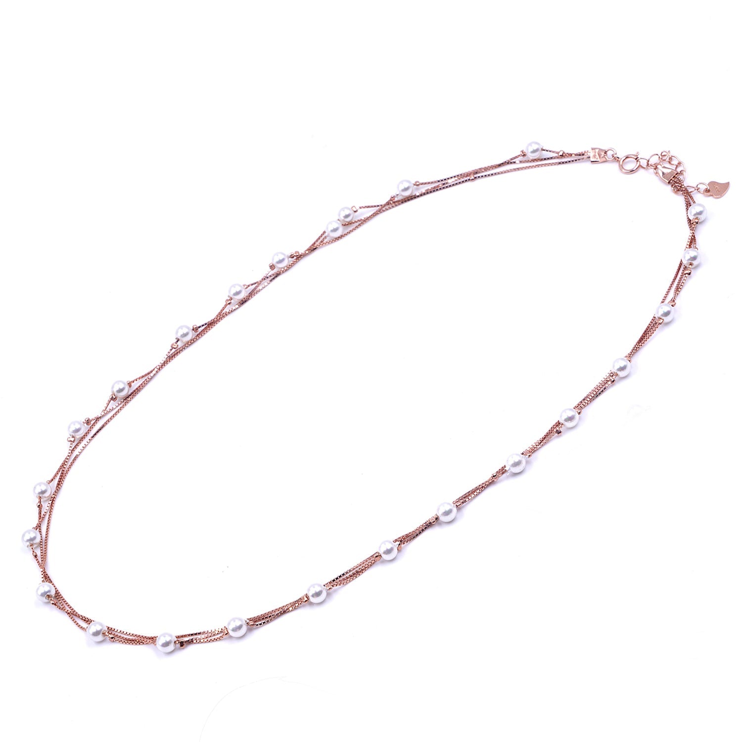 Multi layer Classic Pearl chain in Rose gold finish