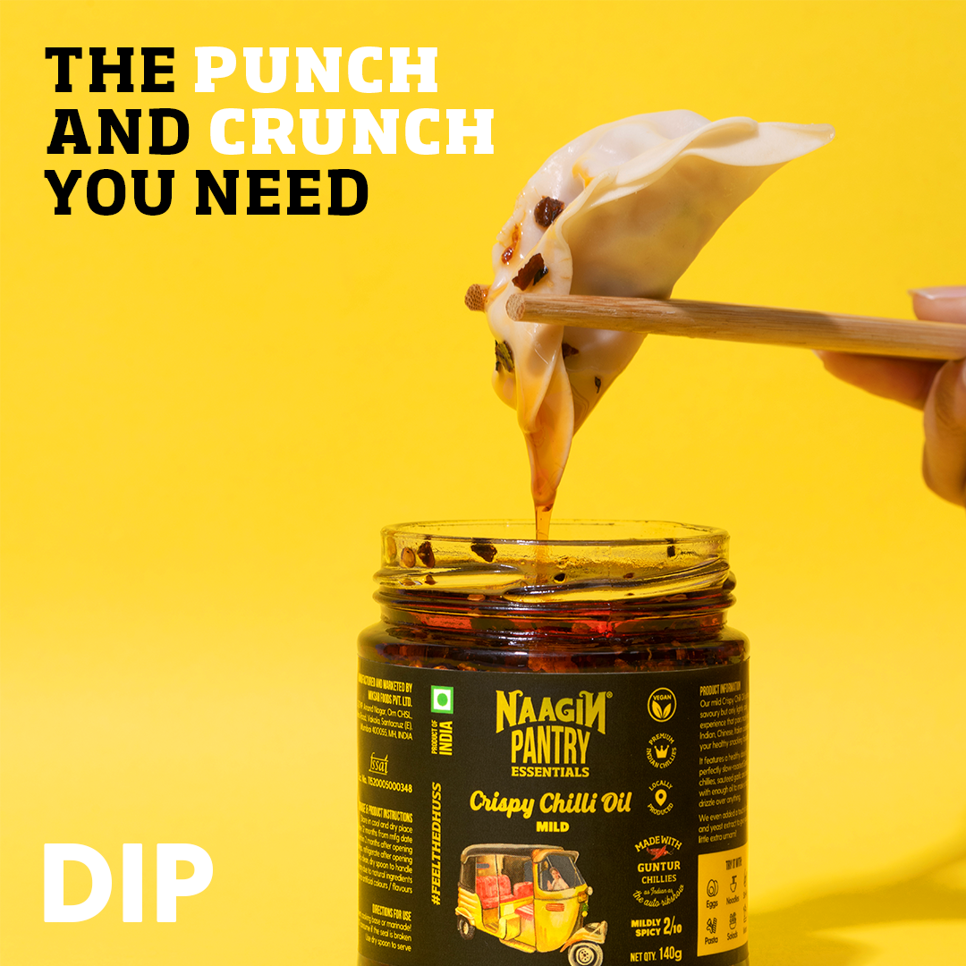 This Indo-fusion umami-laden savoury experience pairs beautifully with Indian, Chinese, Indo-Chinese, Italian and Healthy snacking pairings! Add Naagin Crispy Chilli Oil as a dining-table 'instant tadka', a brilliant salad dressing for the health-consicous, a condiment for momo lovers cursed with bad momo sauces, a sprinling to unleash a beauty of pasta you never knew existed, as THE base for your stir fry OR anything else you love to eat.